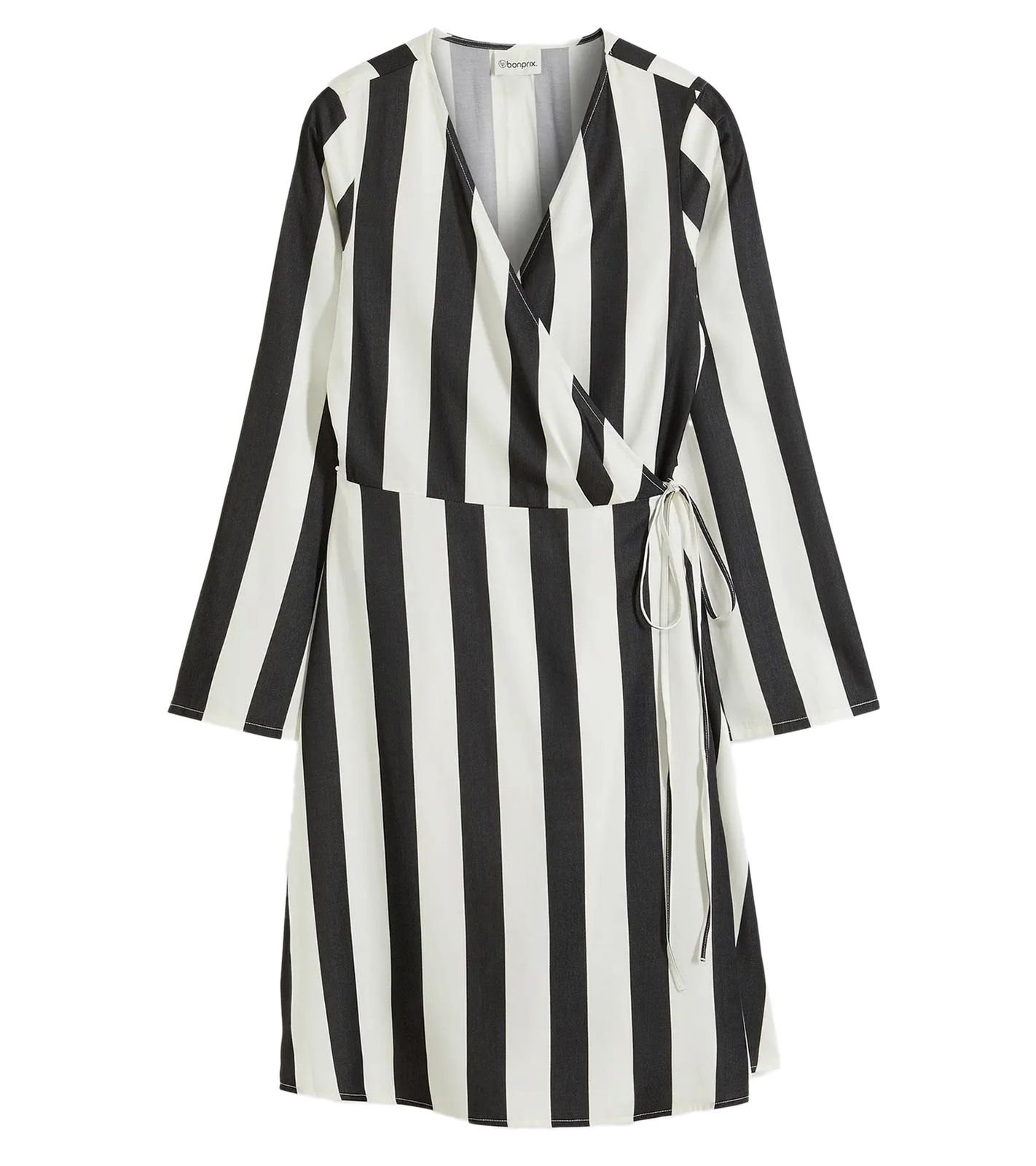 2-pack of beautiful striped dresses for women, wrap dress with V-neck, mini dress 978829, black/white