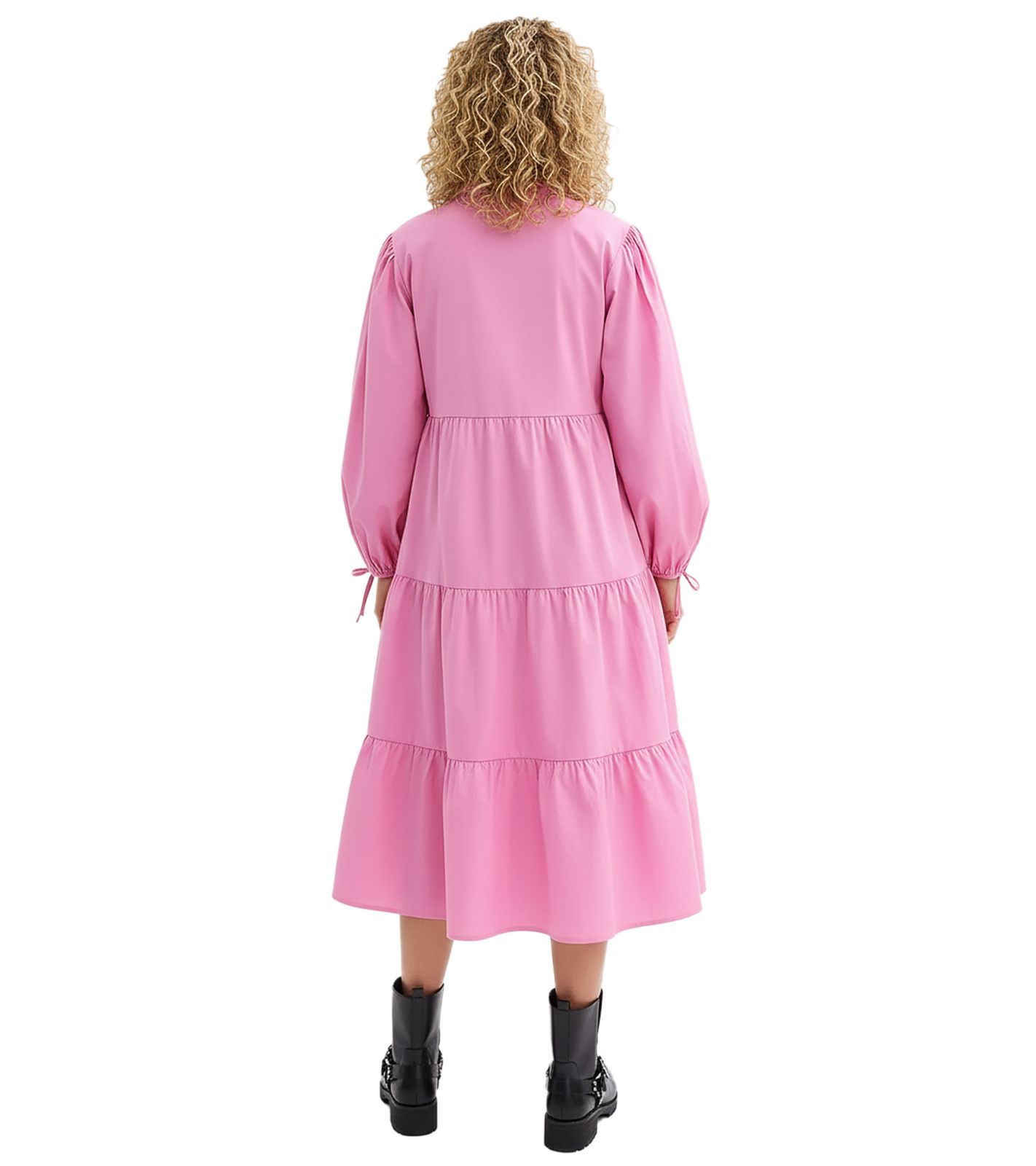 2-pack wide women's midi dress with bows, spring dress made of pure cotton, long-sleeved dress, 977645 pink