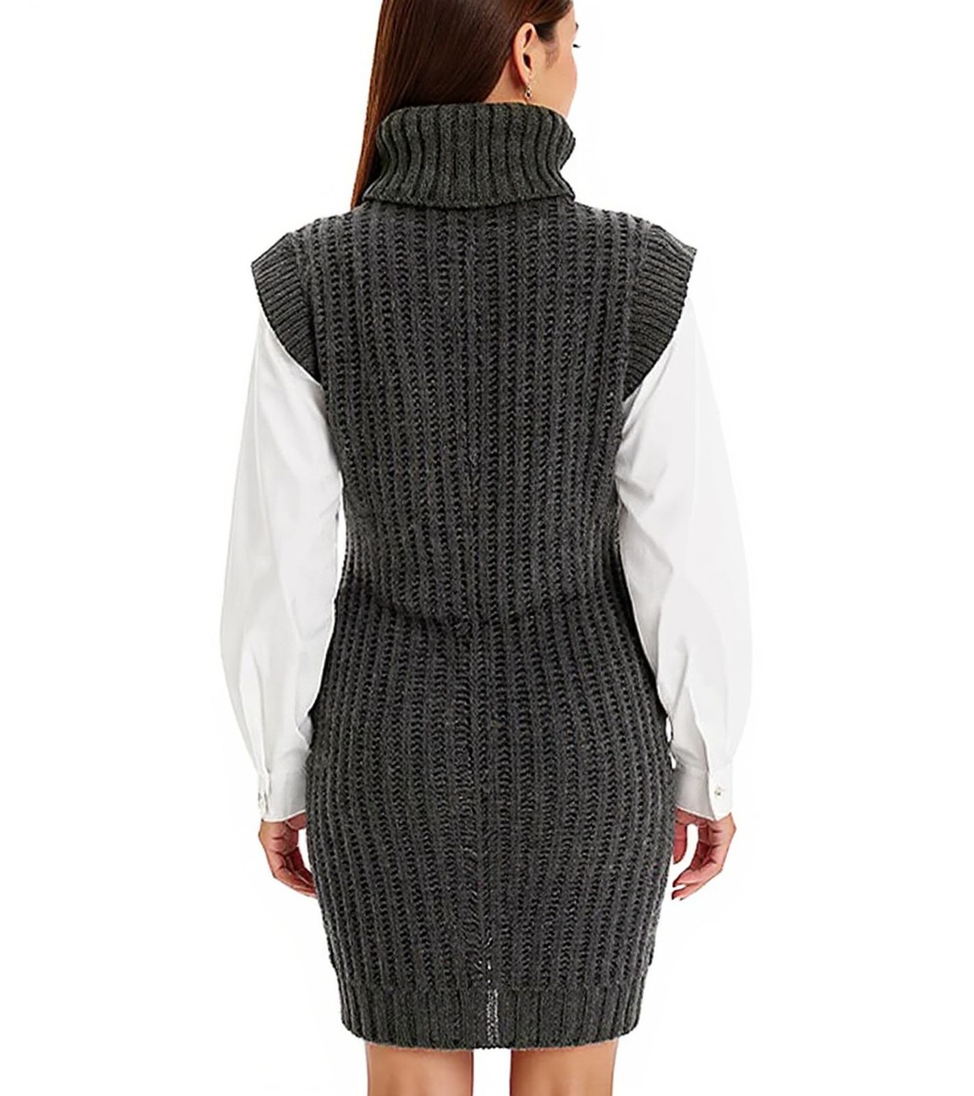 This long-sleeved dress with a stylish turtleneck ensures a flattering fit.