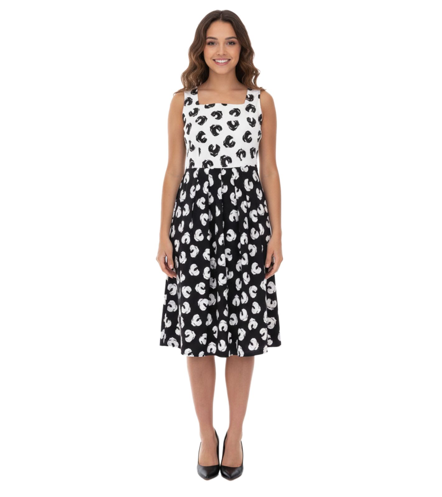 2-Pack Women's Summer Dress with Graphic Print, Sleeveless Cotton Midi Dress 948746 White/Black