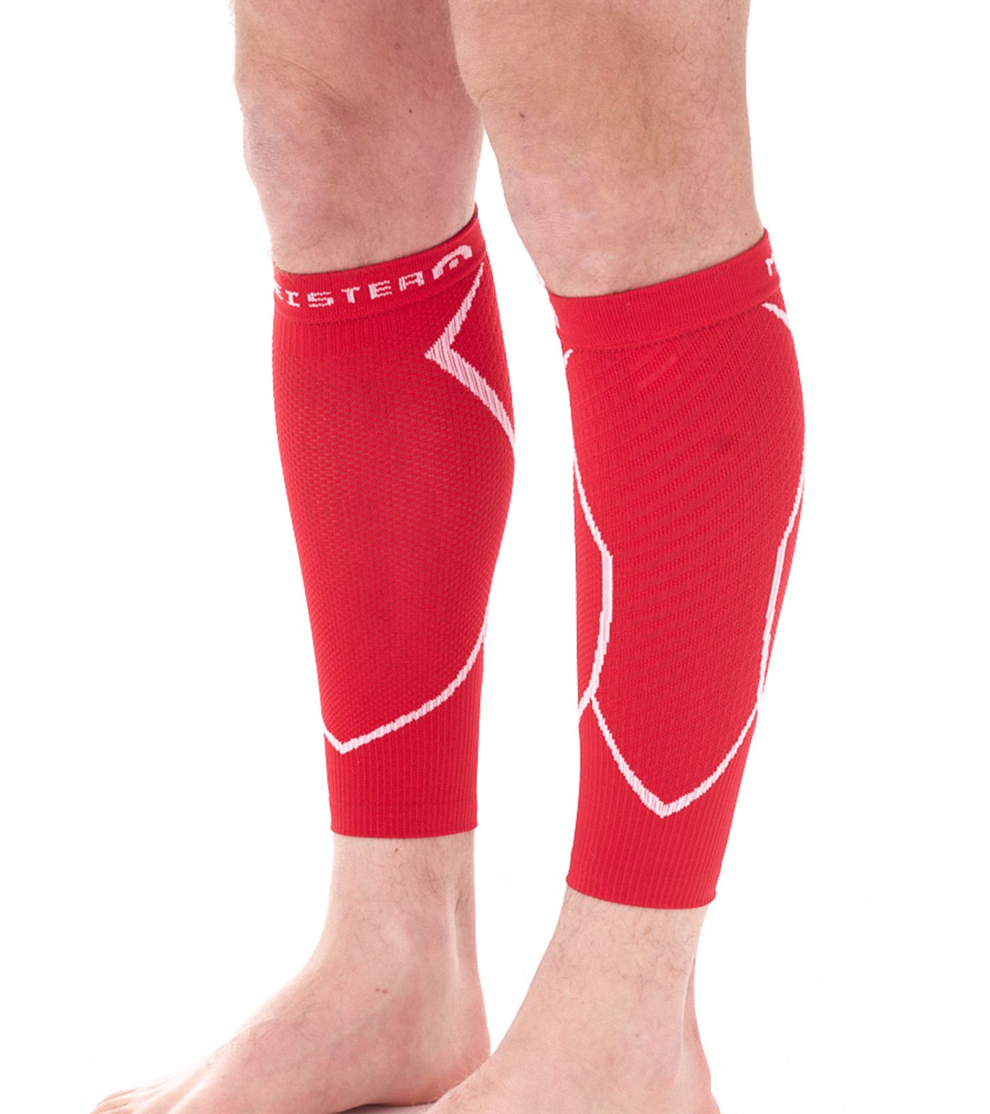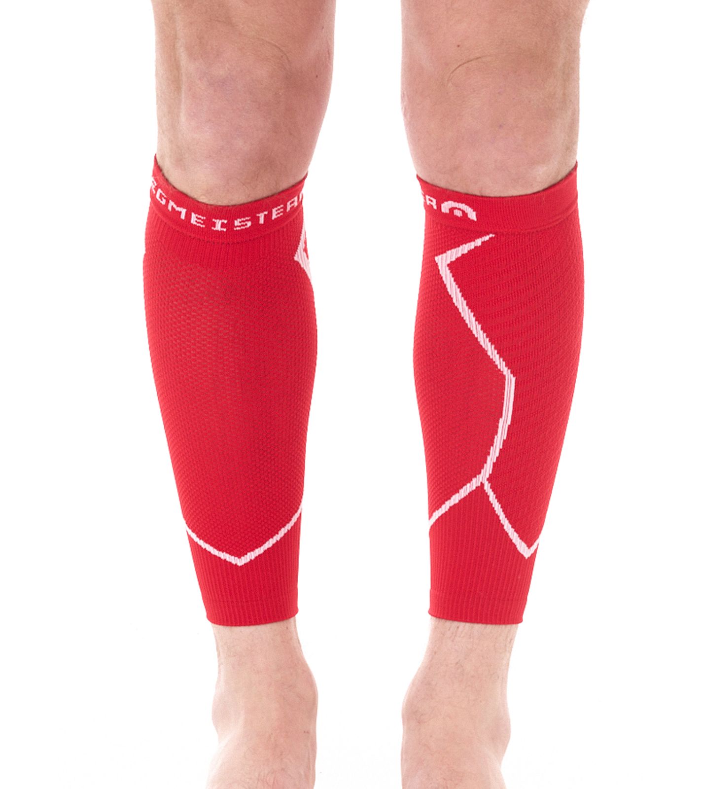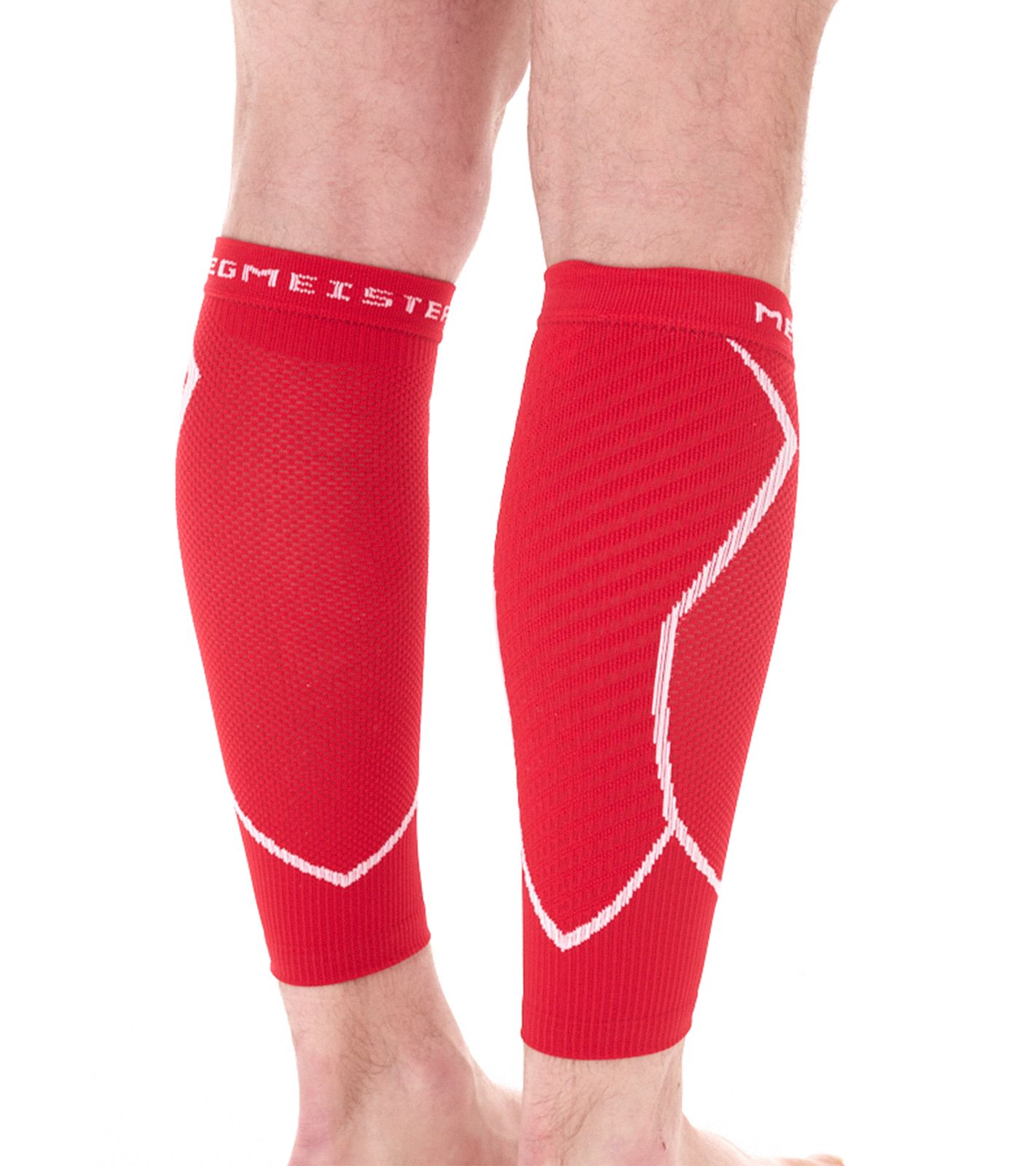 2 Pairs of megmeister Calf Compression Socks, Leg Warmers, 23-32 mmHg, MER003 Red/White