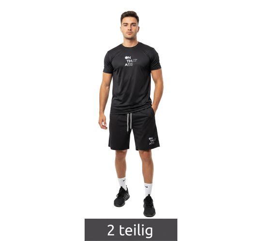 2-Piece ON THAT ASS Zane Men's Sports Set, Training Set, Gym Outfit with T-Shirt & Shorts, Black