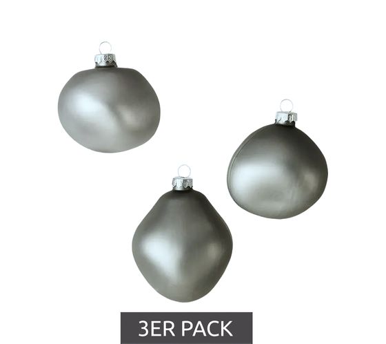 3-Pack Organic-Shaped Glass Christmas Baubles Home Decor 974216 Anthracite