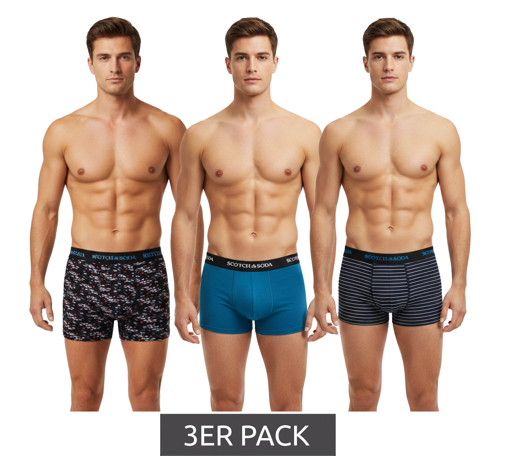 3-Pack SCOTCH & SODA Men's Boxer Shorts with Cotton Stretch Underwear SSSP25M166645-430 Blue/Black/Multicolor