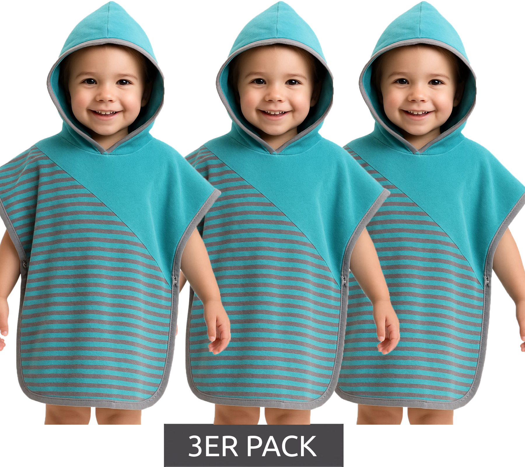 3-pack VOSSEN Toddler Baby Bath Poncho made of cotton with a striped print, 110/140cm Bathrobe, Dressing Gown, 1702940001 Blue/Gray