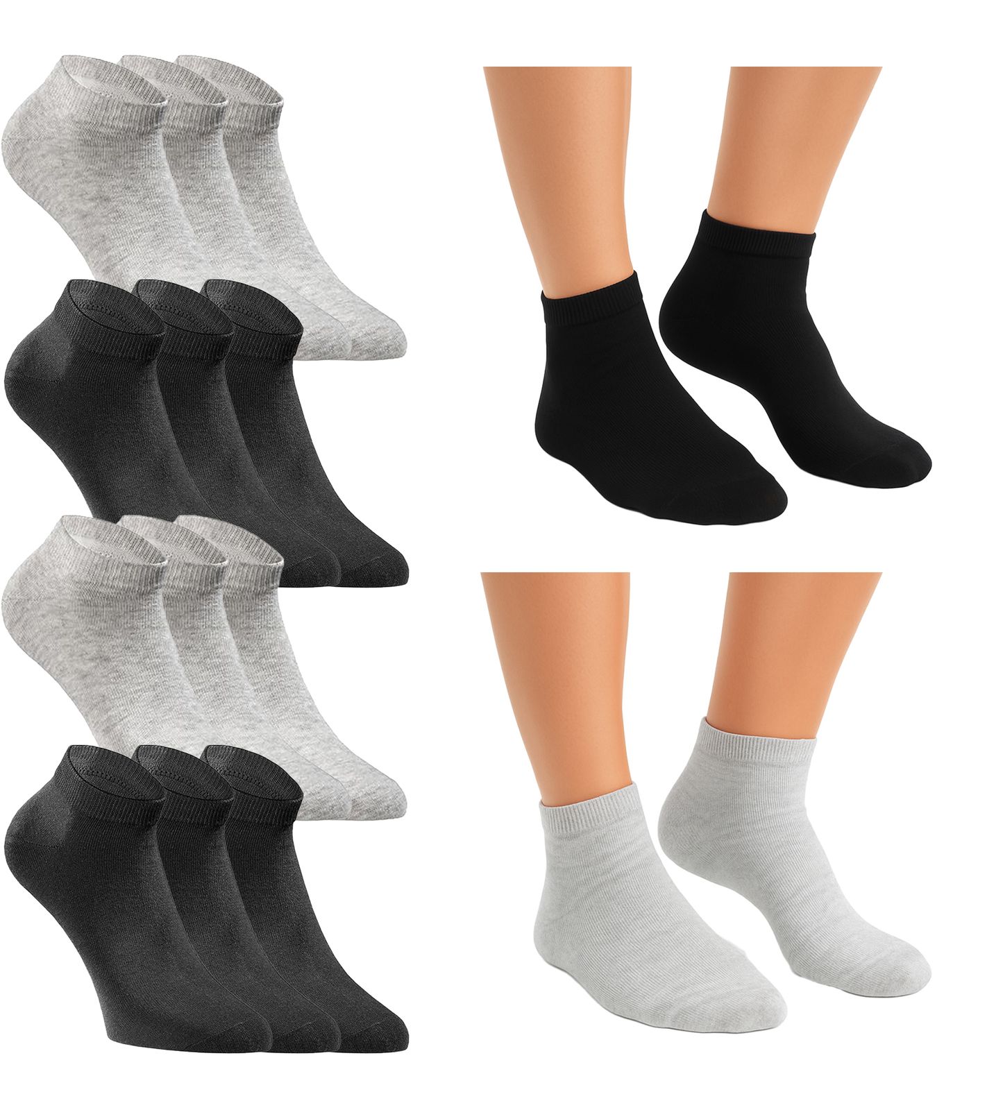 Black/Gray: 18 pairs of black socks, 18 pairs of gray socks