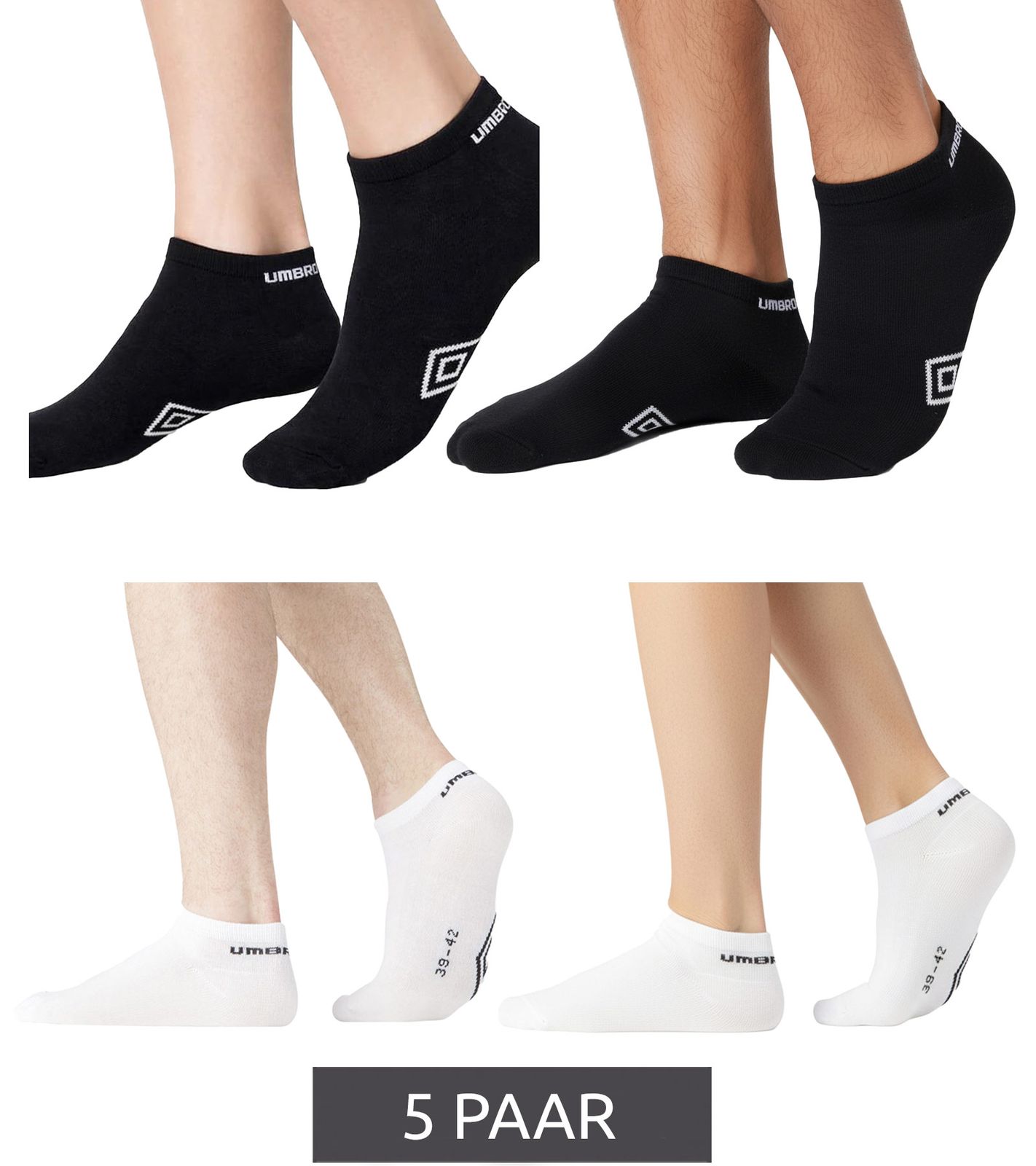 5 Pairs of Umbro Men's and Women's Sport Socks, Sneaker Socks, Oeko-Tex Standard 100 Certified, in Black or White