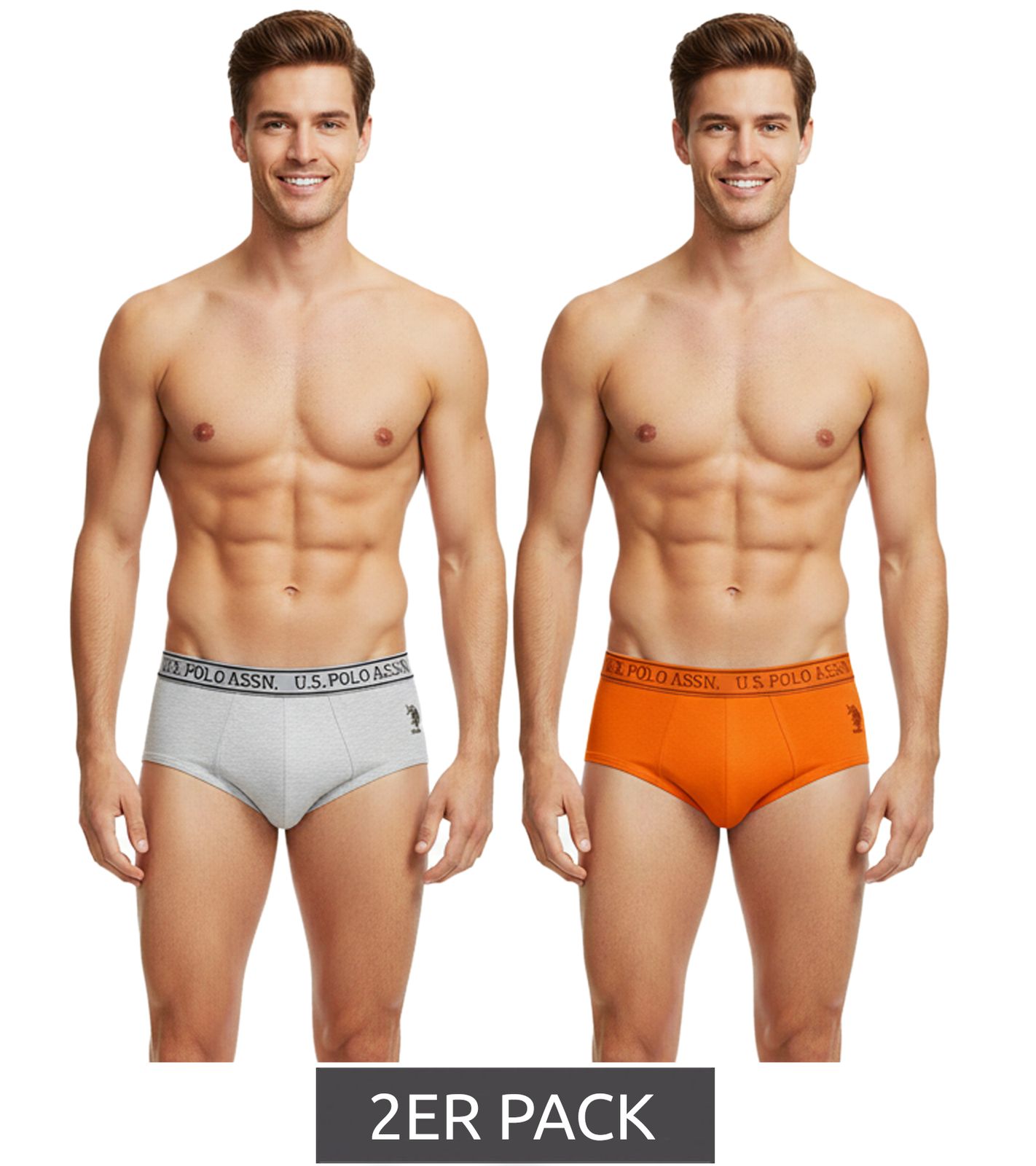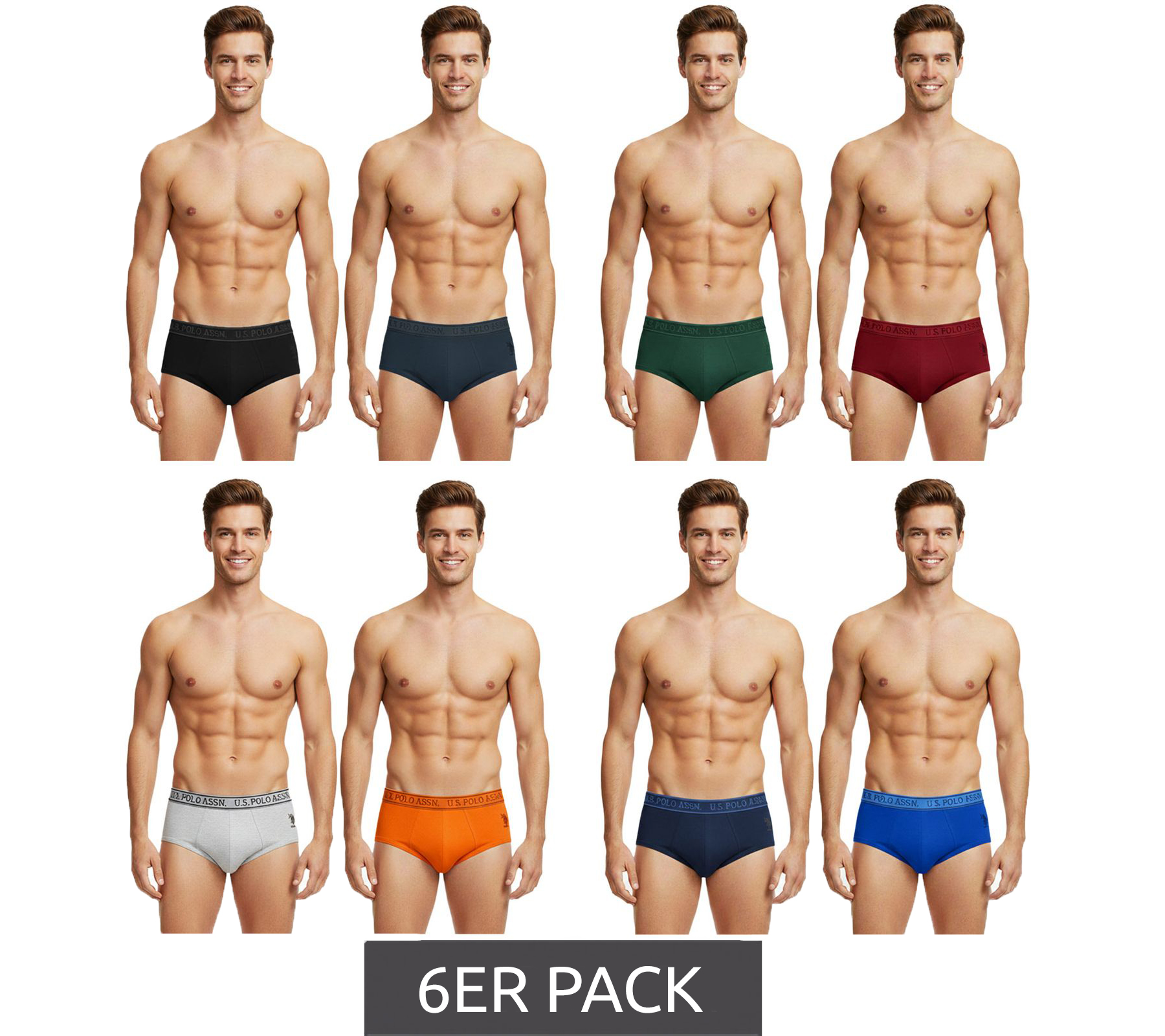 6-Pack Value Pack U.S. POLO ASSN. Premium Men's Briefs, Sustainable Underwear, 180 g/m², 134 68263 53696 in Gray/Black, Blue/Navy, Green/Red, Orange/Gray