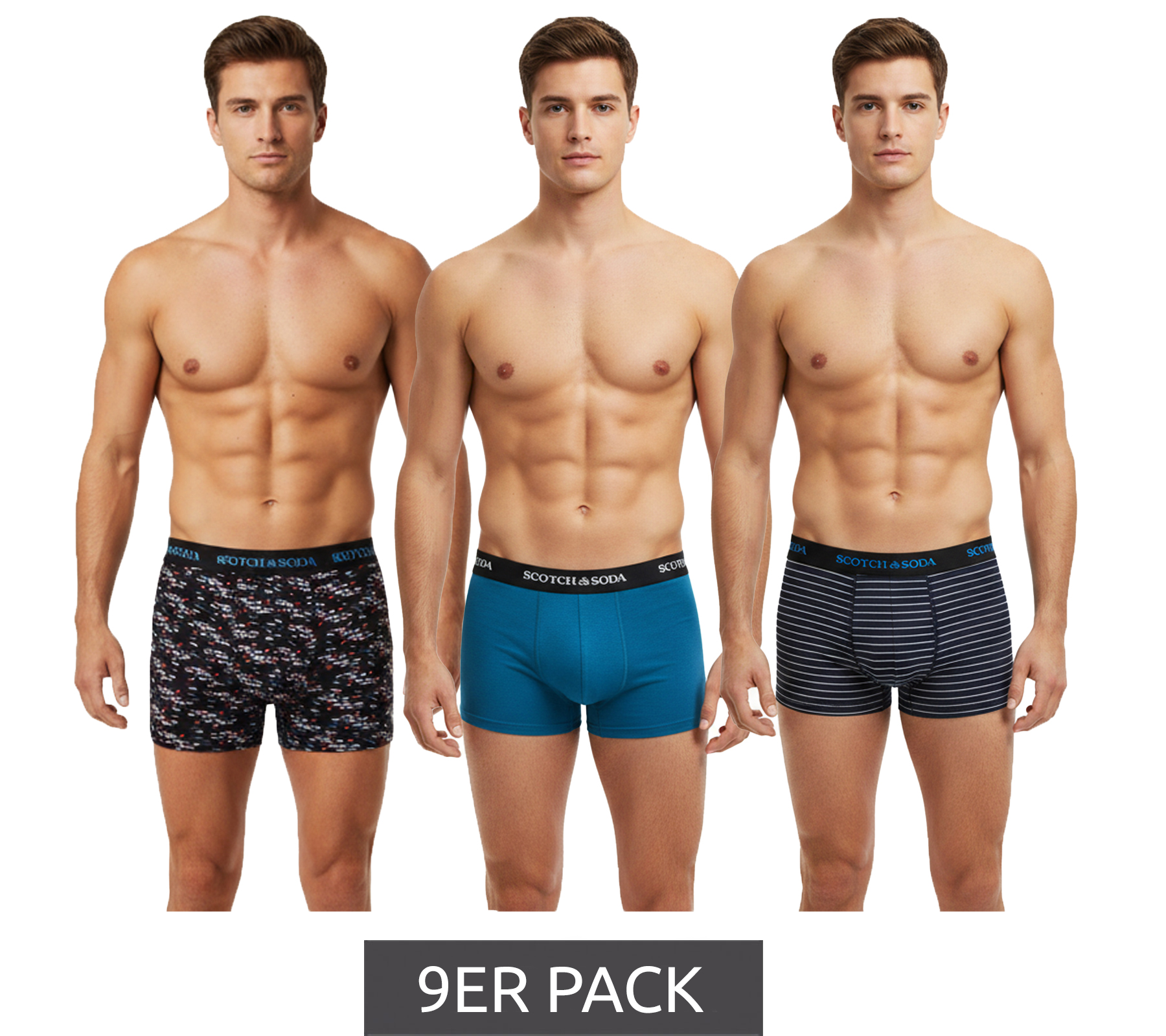 9-Pack SCOTCH & SODA Men's Boxer Shorts with Cotton Stretch Underwear SSSP25M166645 Blue/Black/Multicolor or Blue/Multicolor