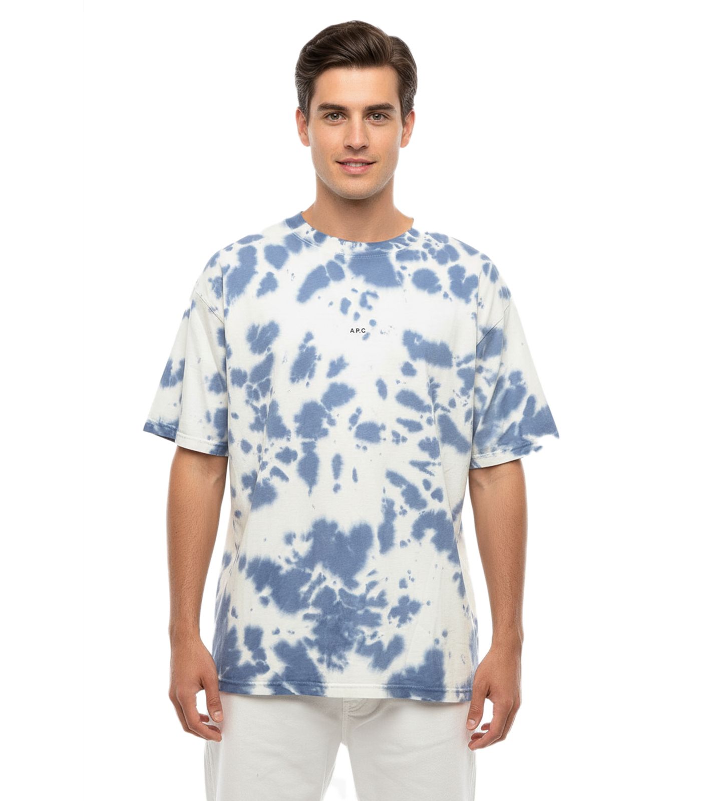 A.P.C. Men's Cotton T-Shirt with Batik Print – Adrien Tee White/Indigo