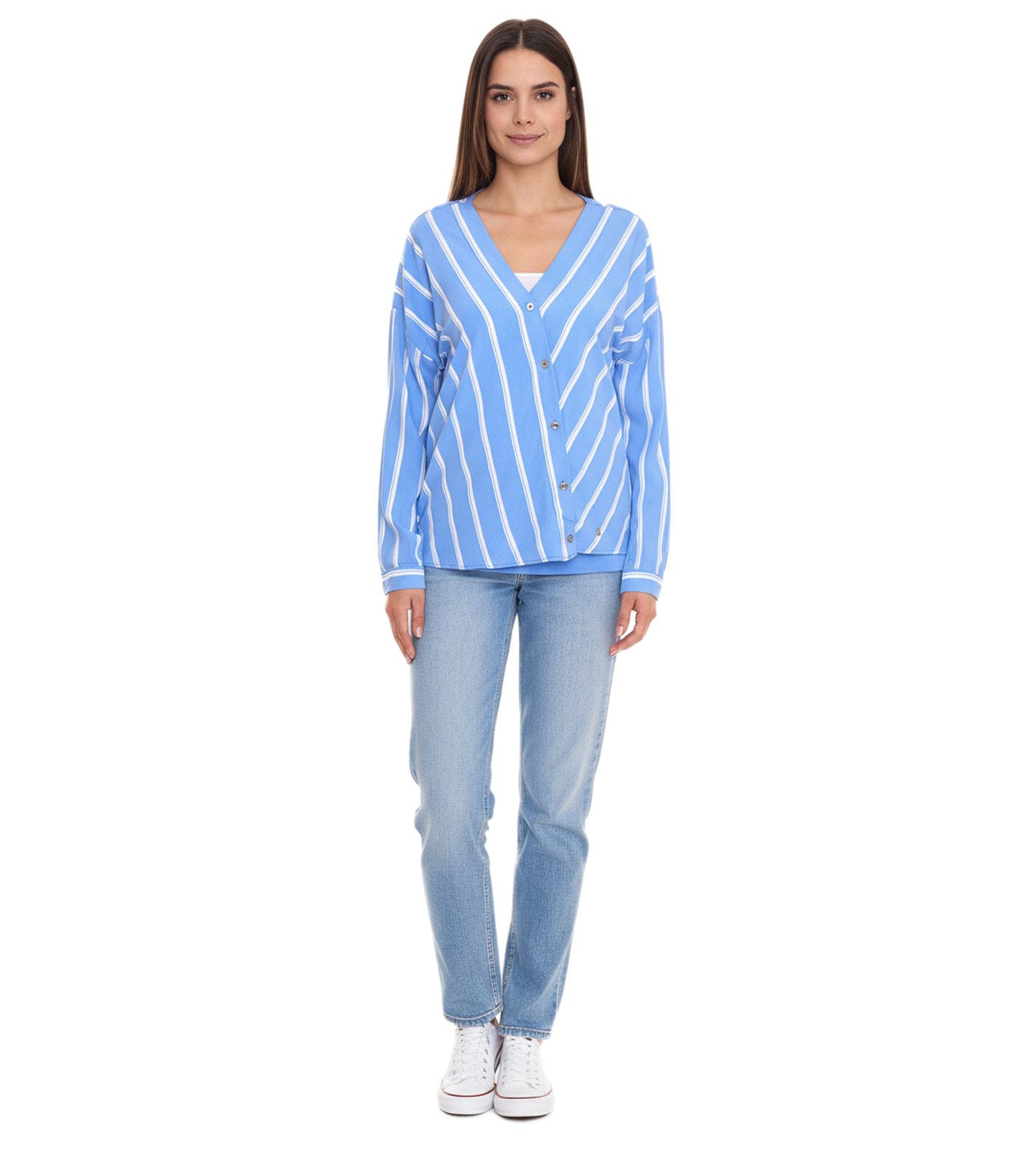 AjC women's slip-on blouse, sustainable V-neck blouse, striped 48173418 blue/white