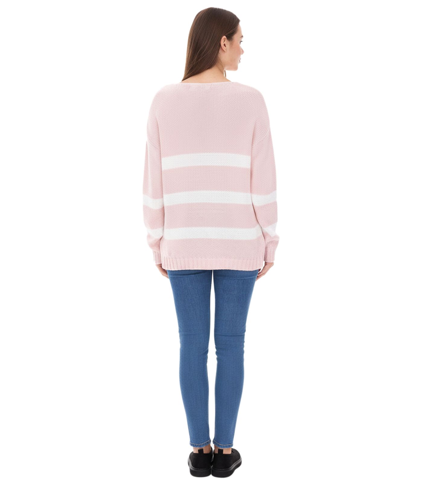 Aniston CASUAL Women's Knit Sweater with Cotton Content, Everyday Sweater, Long-Sleeved Shirt, 74491342 Pink/White