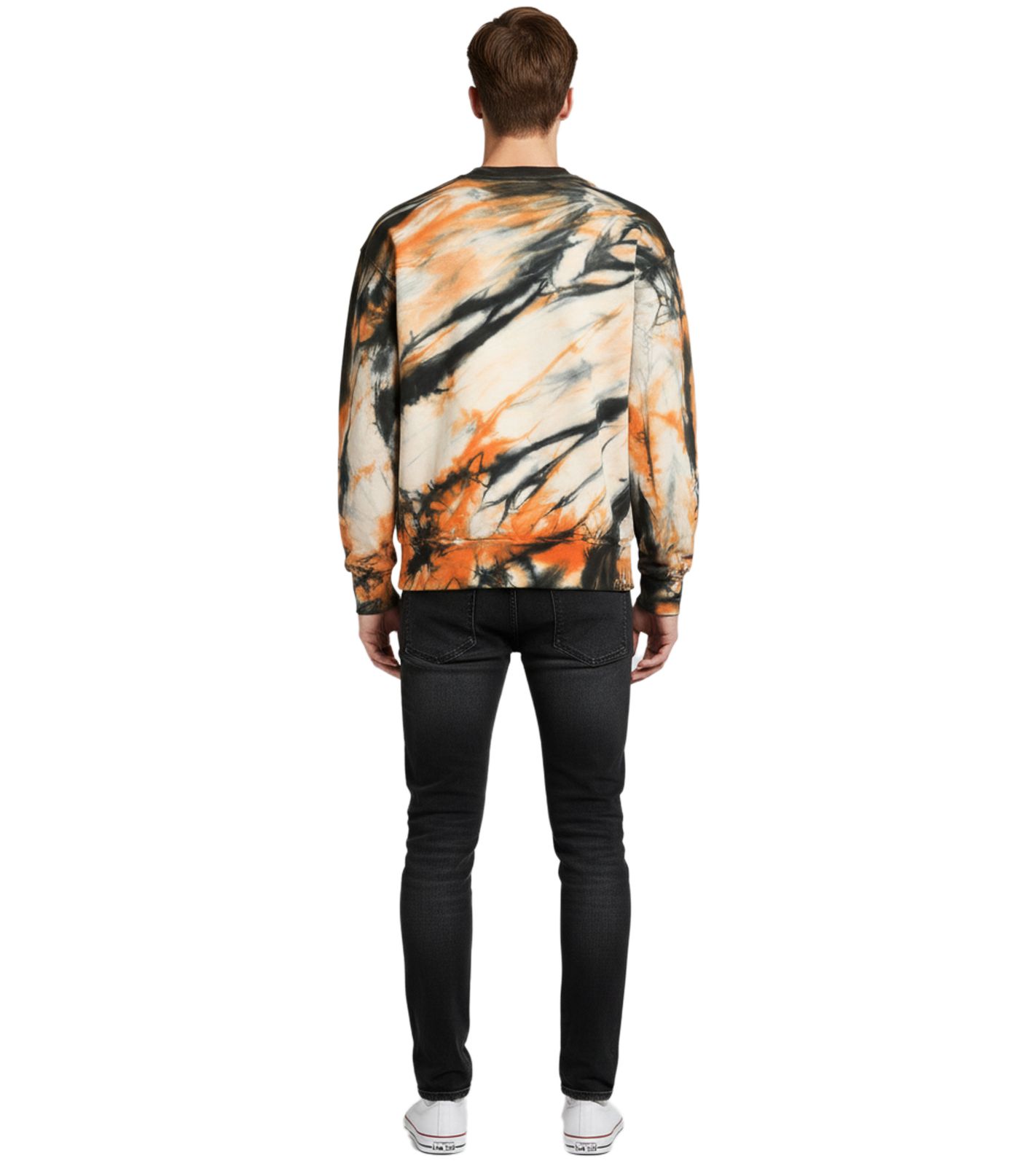 Aries Tiger Dye Men's Sweatshirt with "No Problemo" Lettering, Colorful Cotton Pullover Sweater