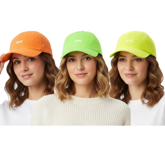 Bright ZWILLINGSHERZ OMG Classic Baseball Cap with OMG Embroidery, Cotton Cap, Adjustable Brim, 4603M K258210 in Neon Green, Yellow, and Orange