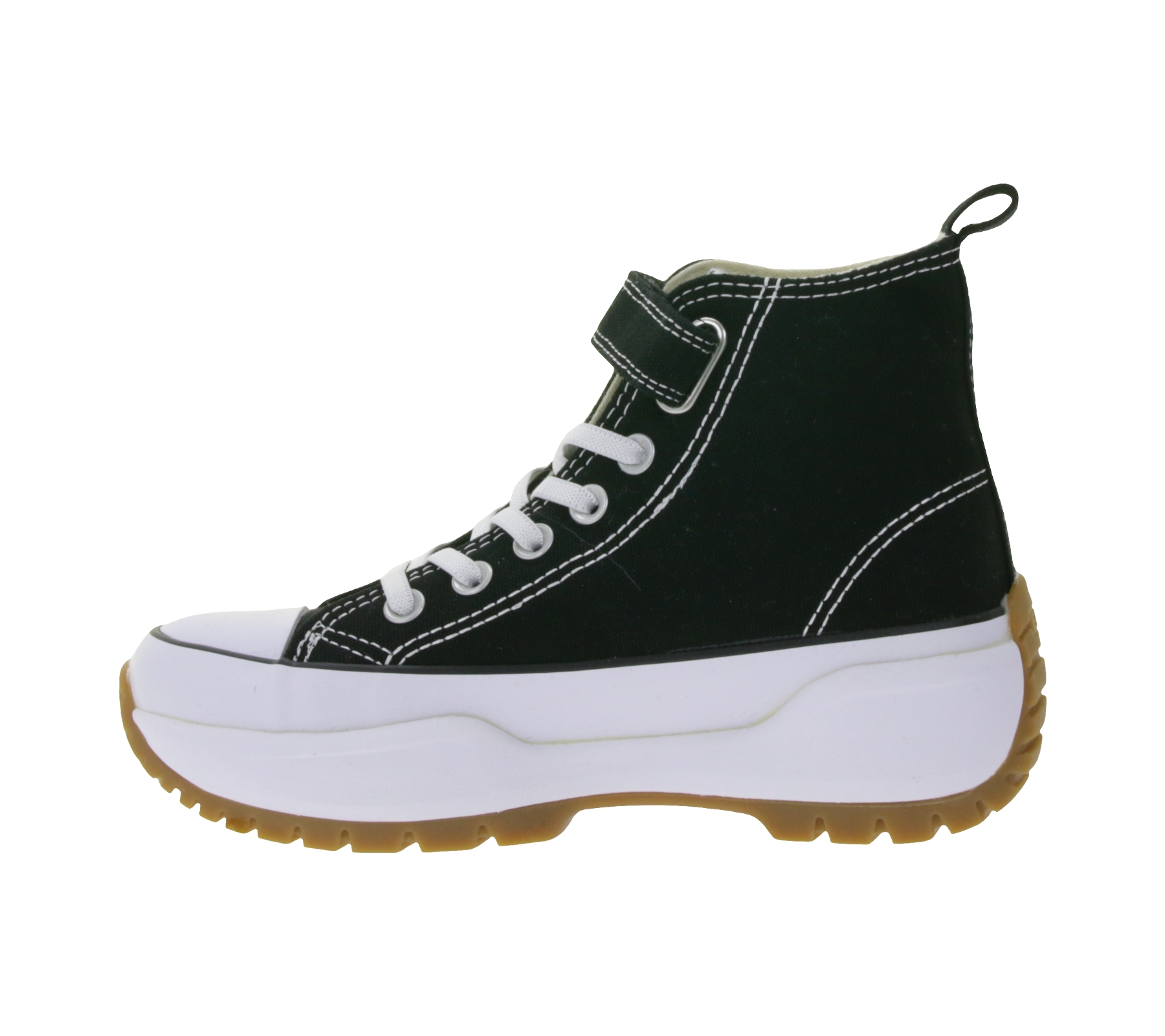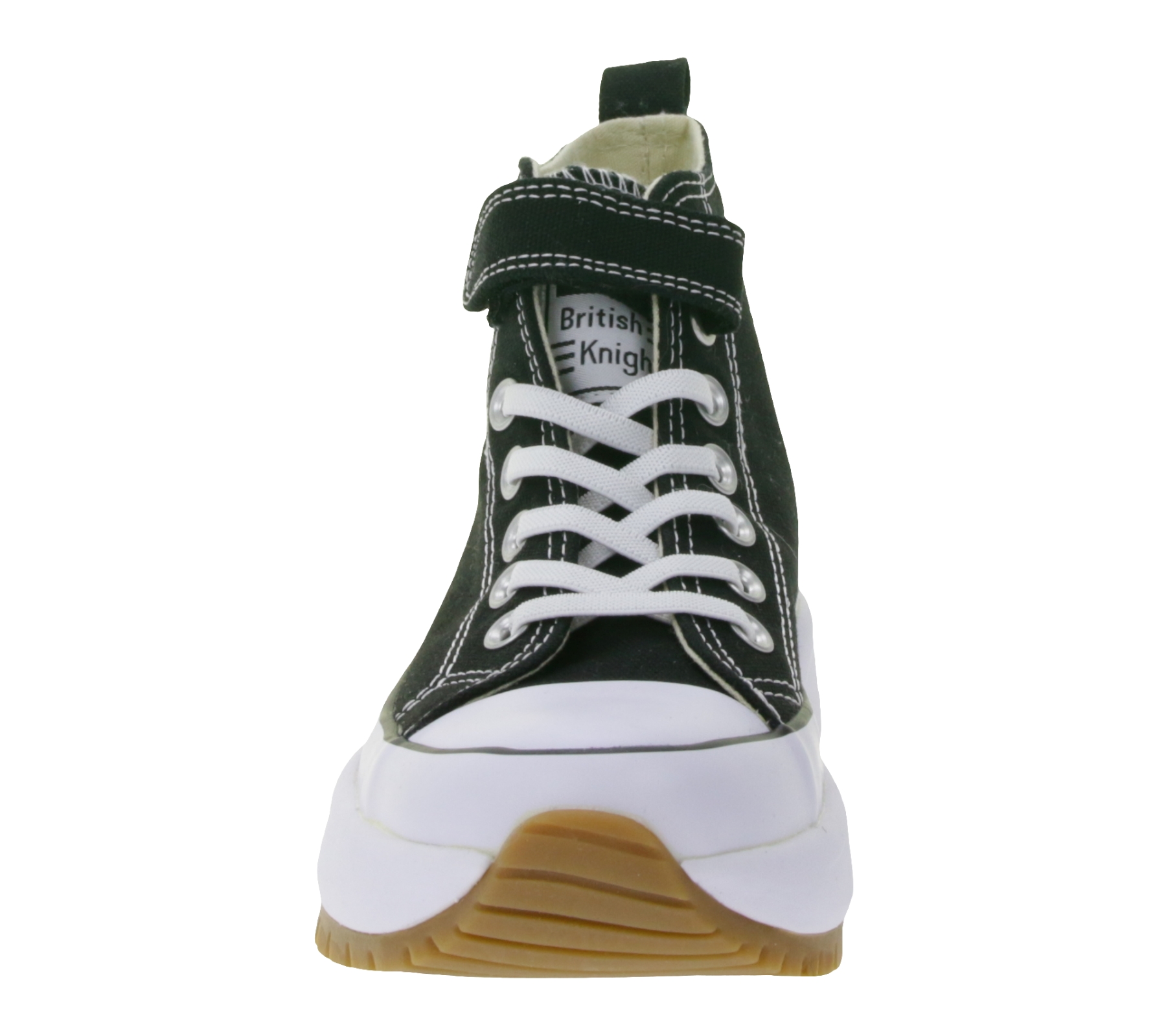 BRITISH KNIGHTS Kaya Mid Fly Kids Mid-Top Canvas Sneakers with Serrated Sole Lace-Up Shoes Teen Boys Girls B49-3702C-01 Black