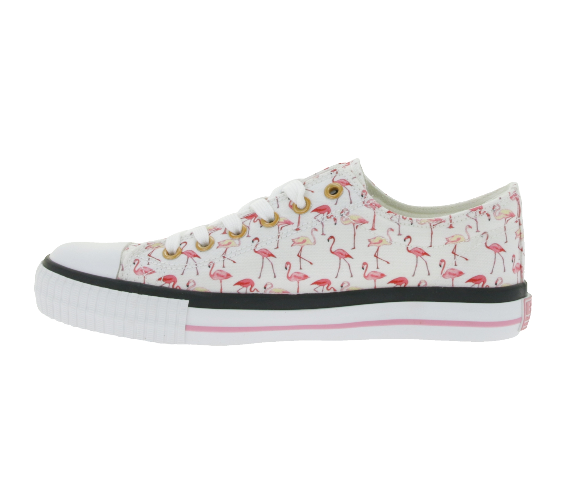 BRITISH KNIGHTS Master Lo Women's Low-Top Sneakers with Flamingo Print, Canvas Lace-Up Shoes B49-3721-03 White
