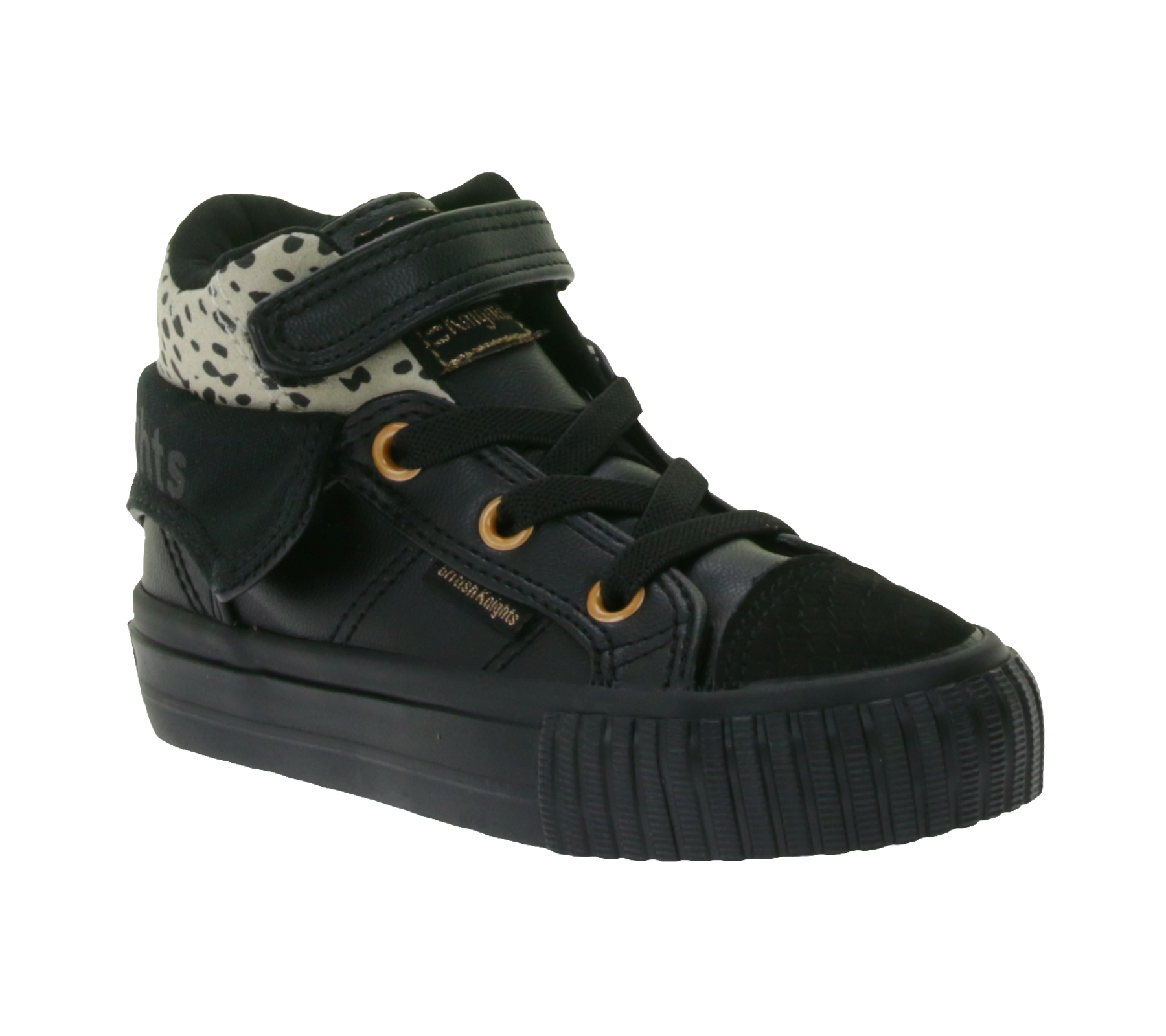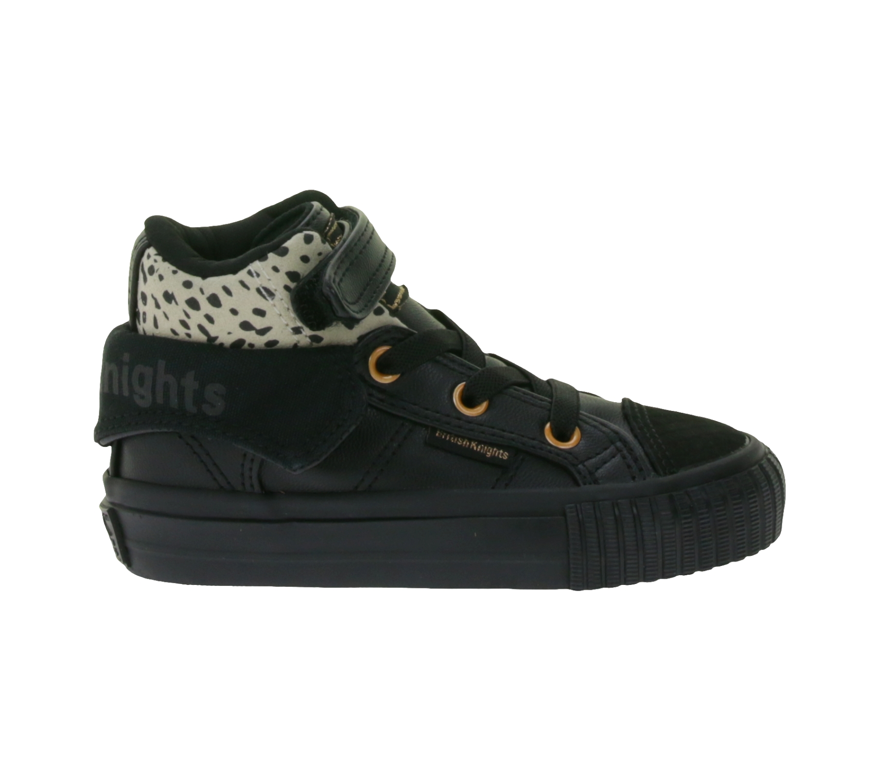 BRITISH KNIGHTS Roco Baby Mid-Top Sneakers with Cheetah Print - Toddler Lace-Up Shoes with Fold-Down Cuff - Girls B48-3709I-01 Black