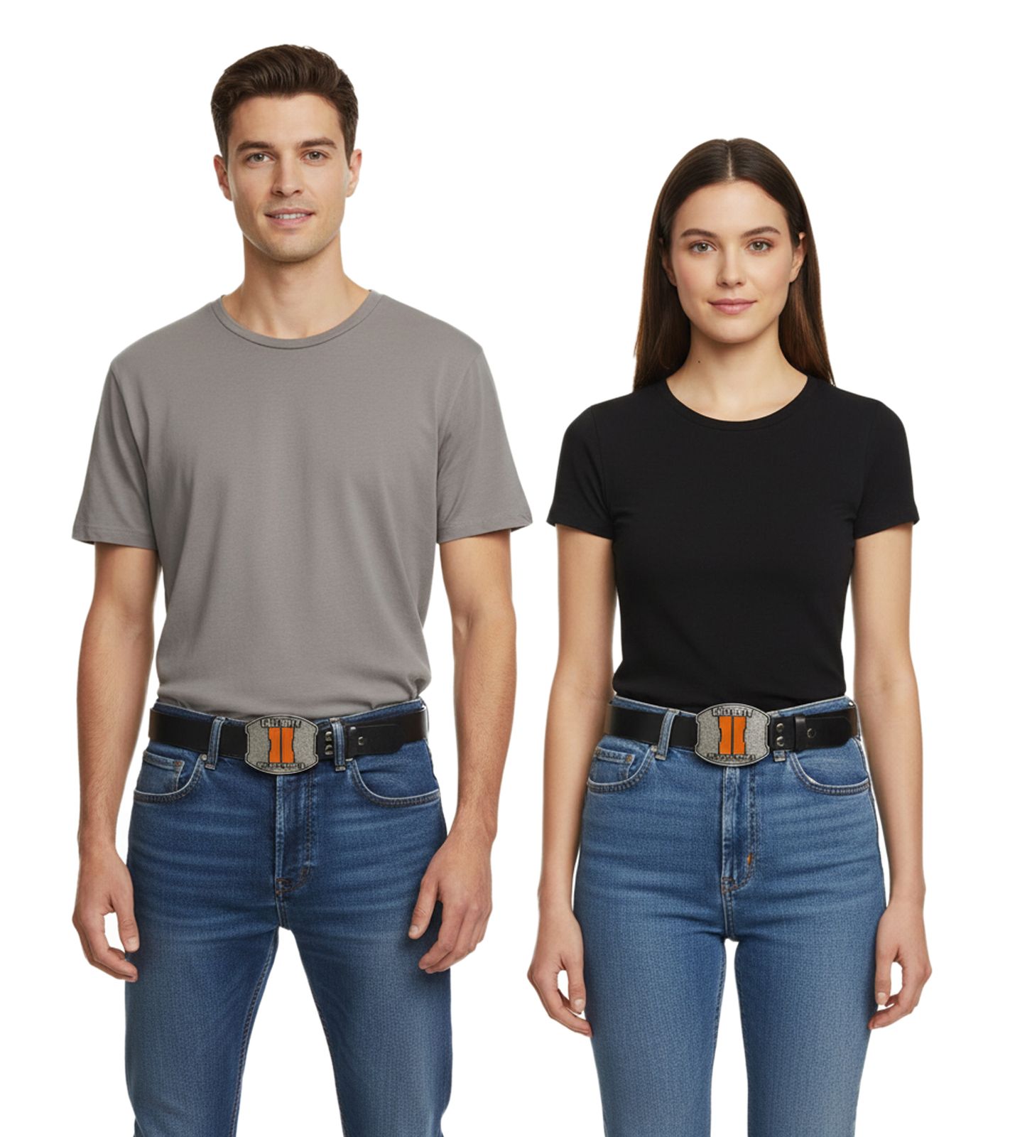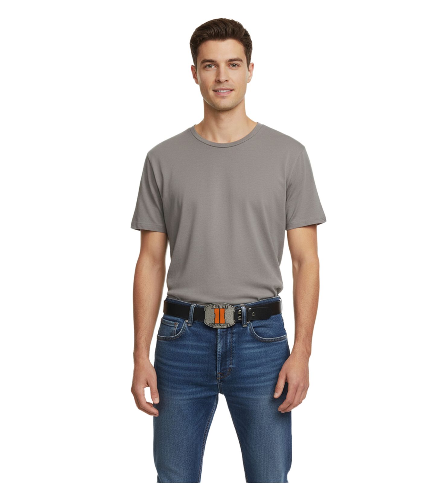 Call of Duty Black Ops II Belt for Men or Women, Leather Belt with Logo Buckle, Casual Belt, Black