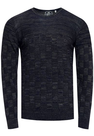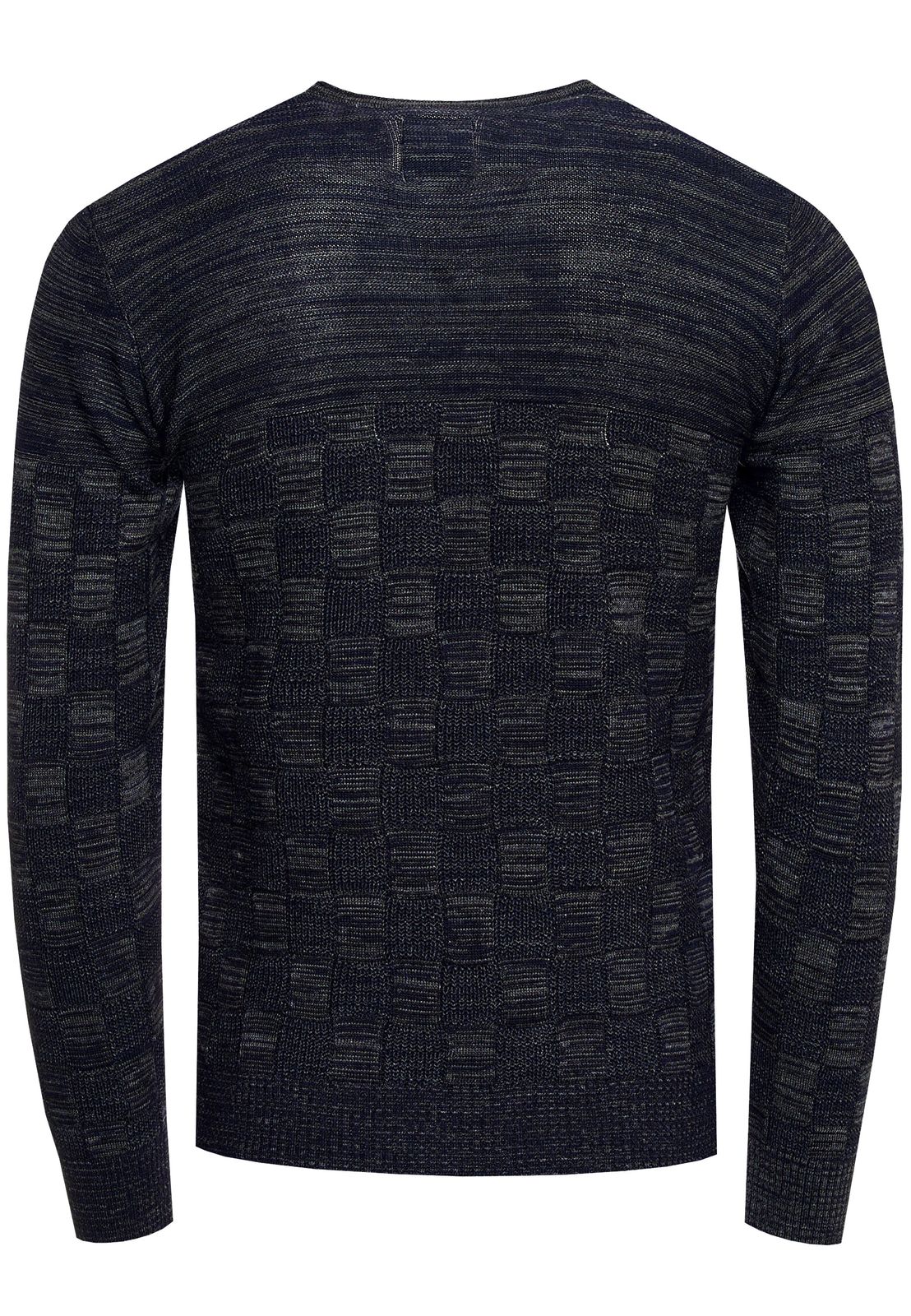 Casual men's fine-knit pullover with check pattern and round neck, slim fit knit sweater 13378 navy