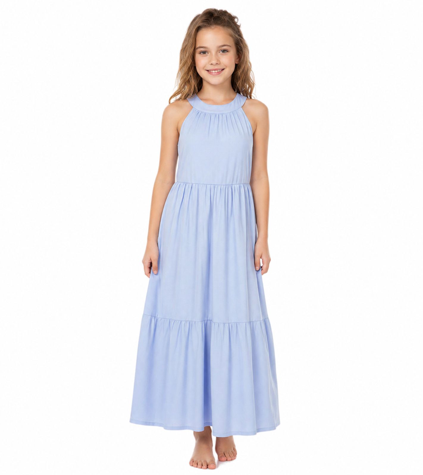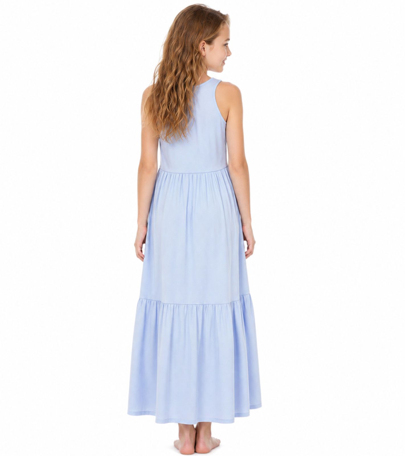 Children's Maxi Jersey Dress in Pure Organic Cotton, Sleeveless Dress, 935526 Blue
