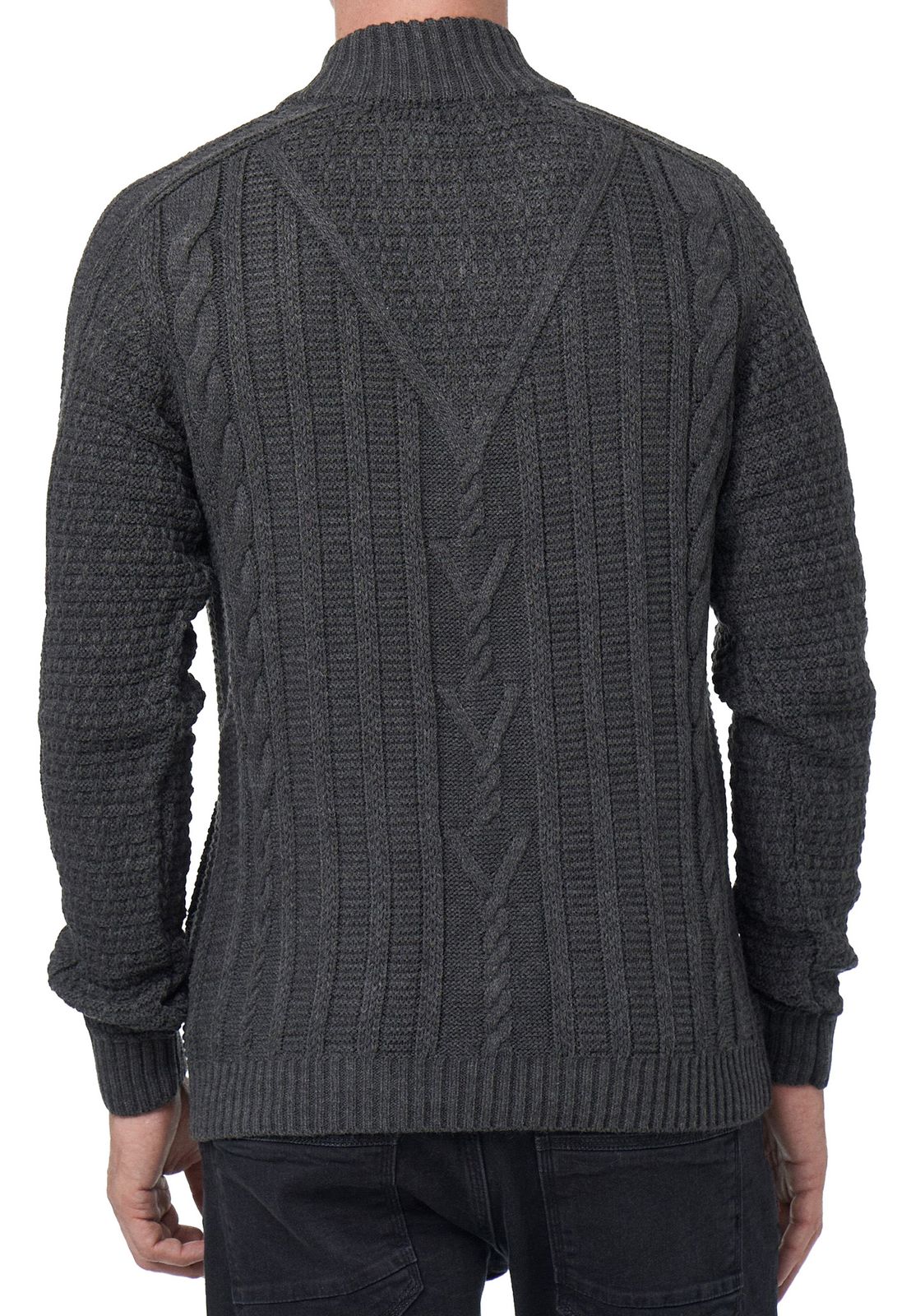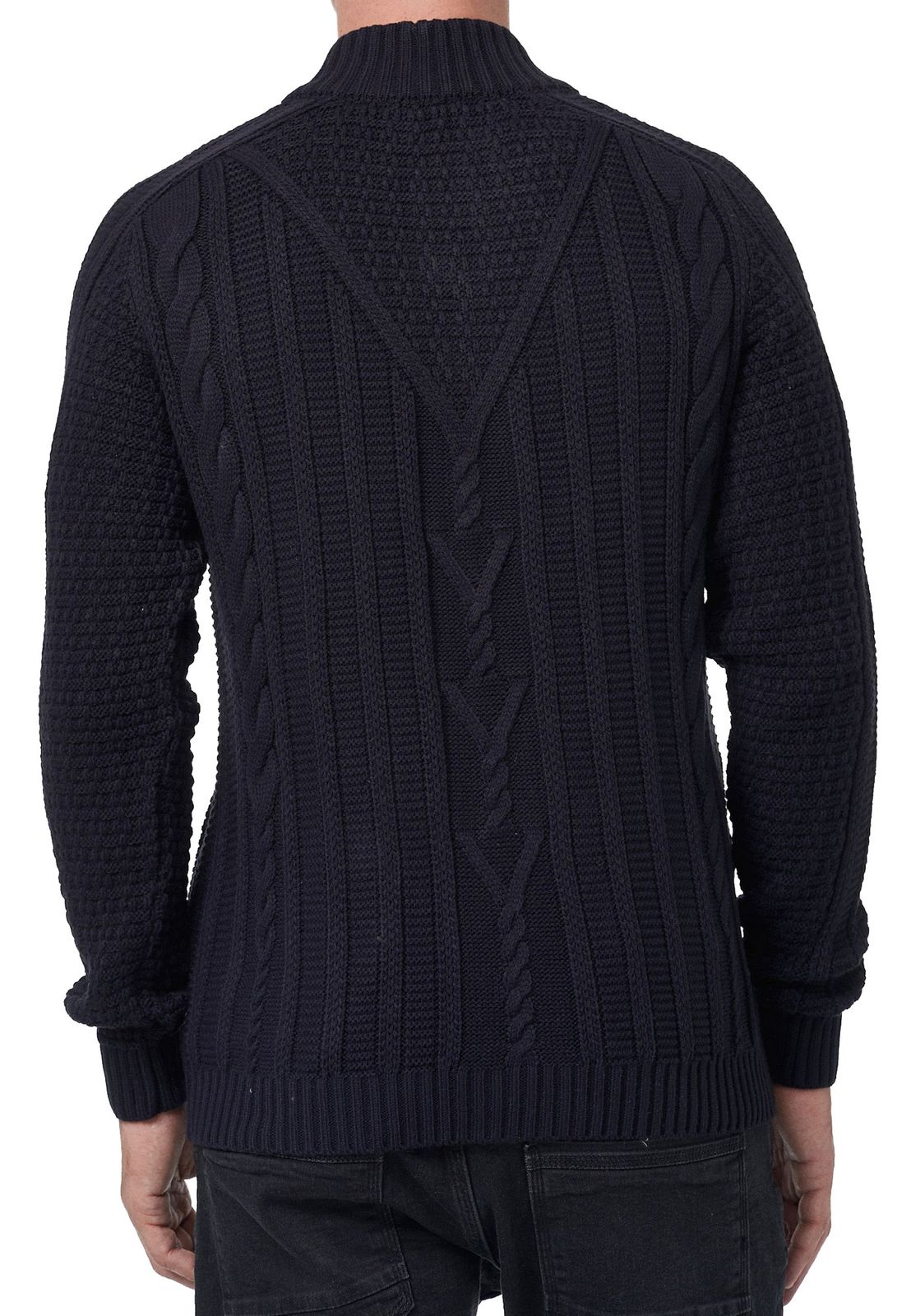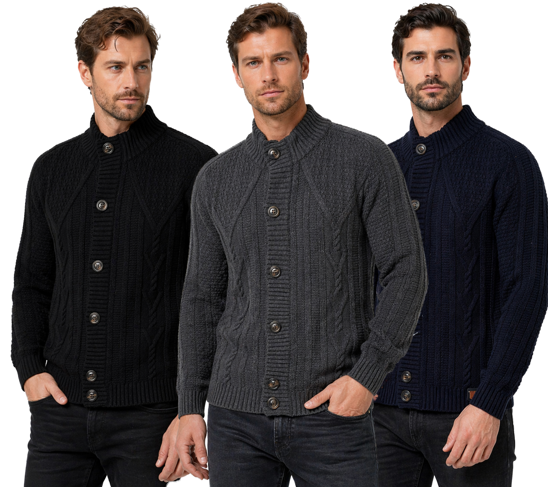 Classic Men's Chunky Knit Cardigan with Stand-Up Collar and Button Placket - Textured Cardigan 13401 - Black, Navy, or Gray
