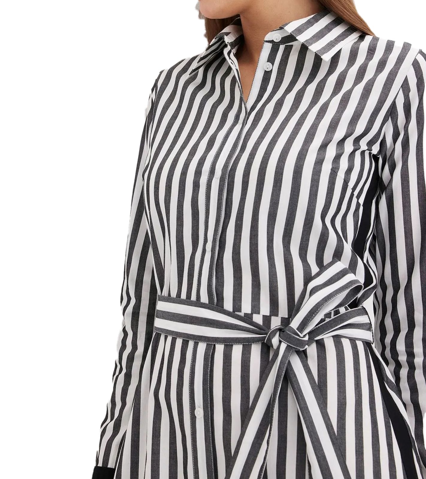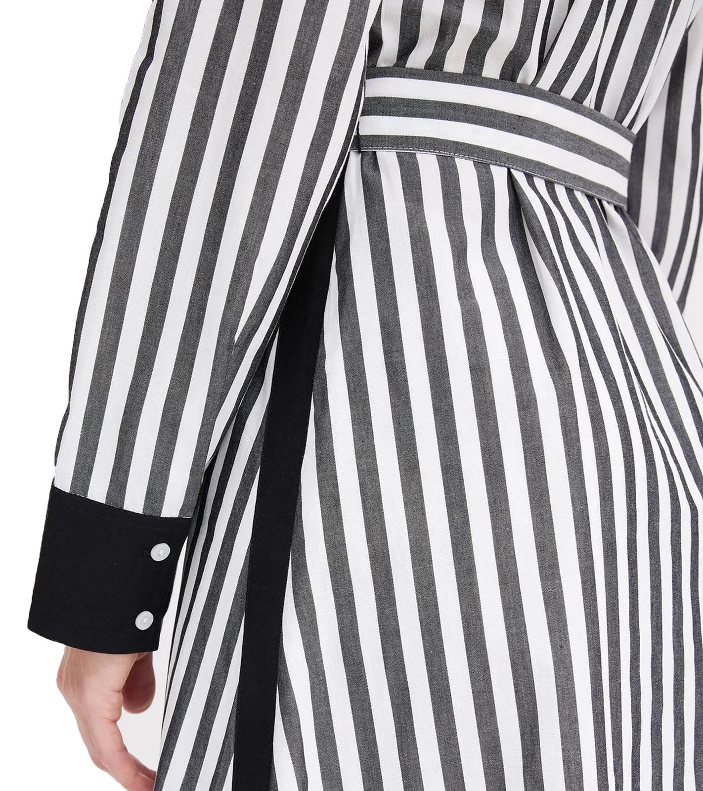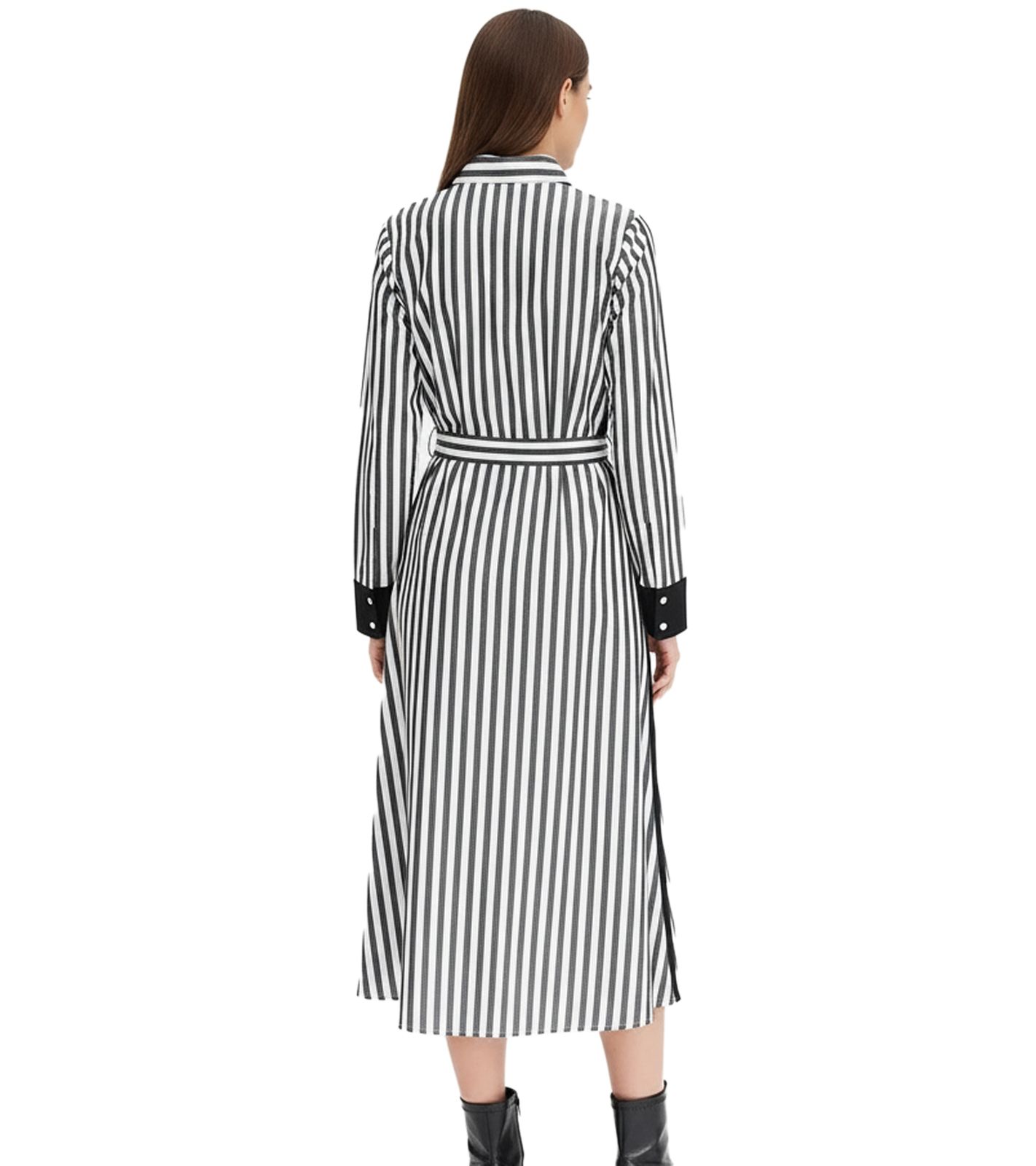 Classic women's midi dress, shirt dress with a striped design, cotton dress 934129, black/white
