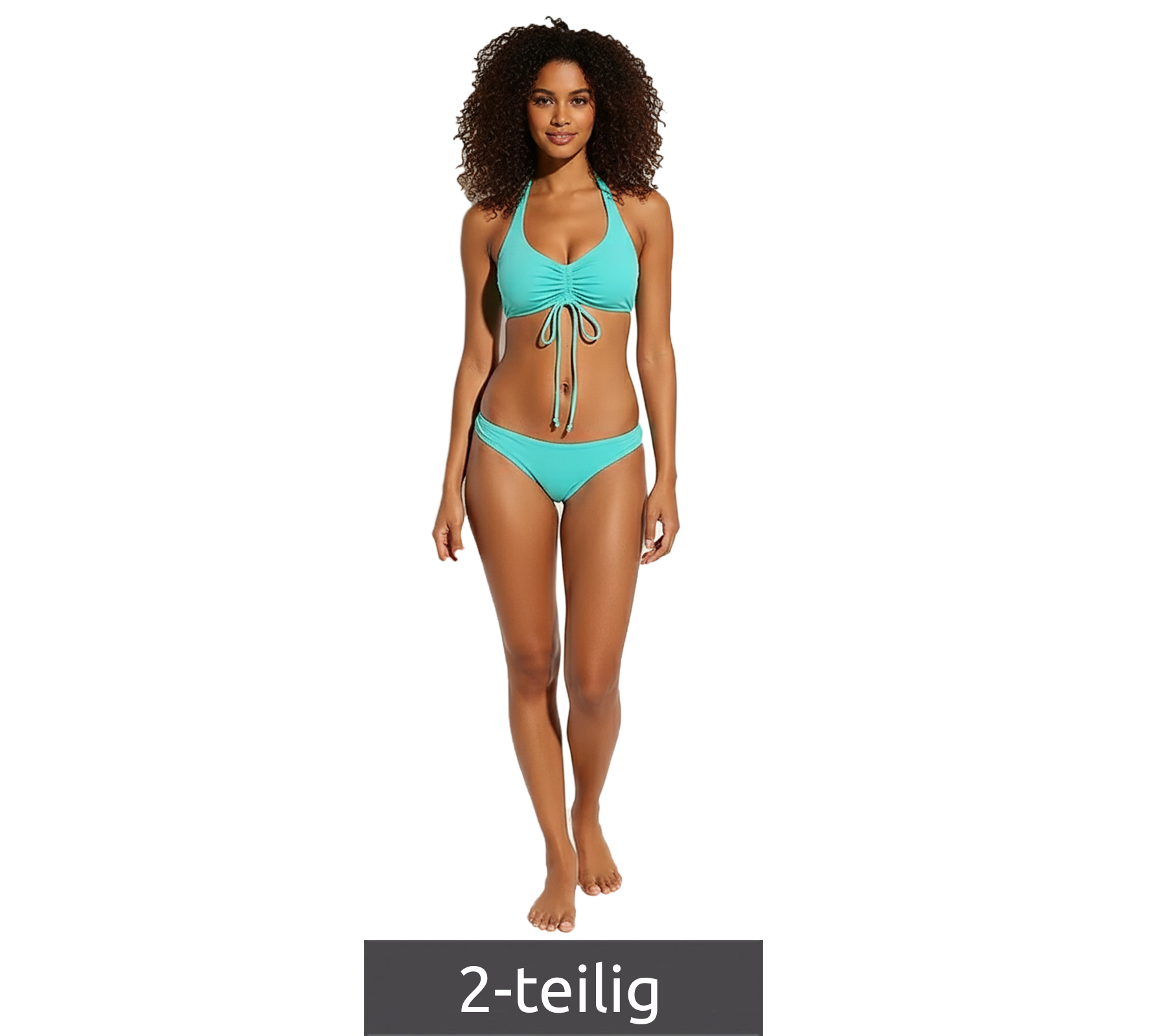 This halter-neck swimsuit set impresses with its simple design.