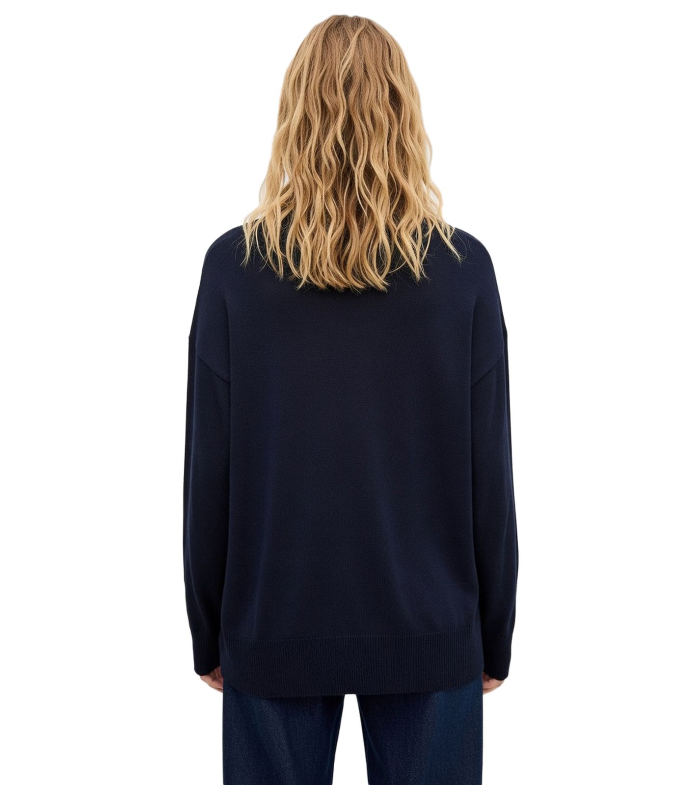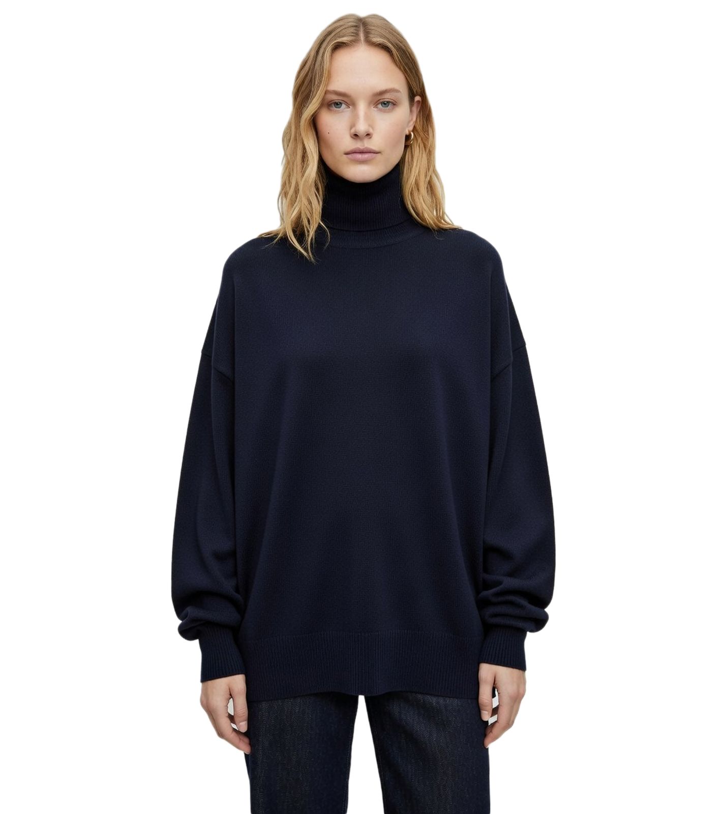 Comfortable Women's Fine Knit Sweater with Wide Turtleneck 933142 Dark Blue