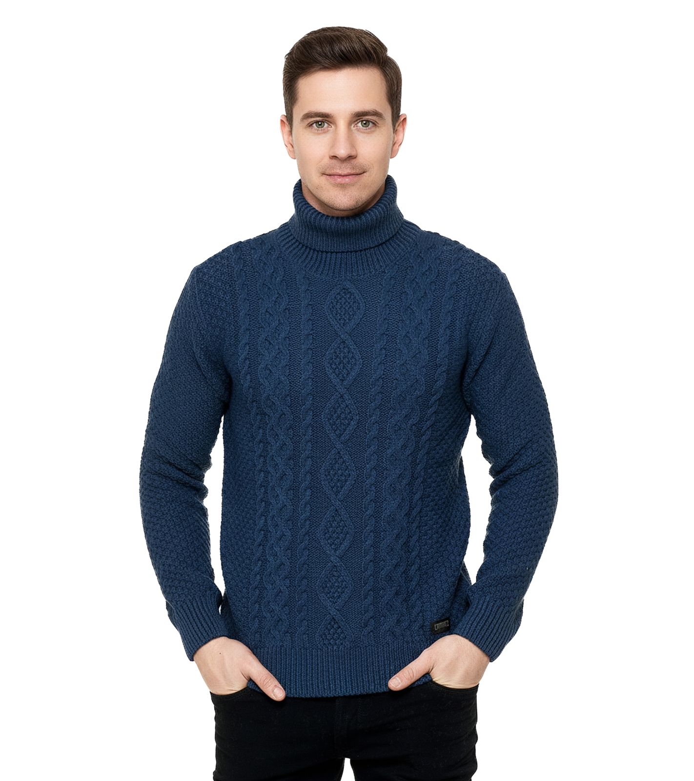 Cool men's chunky knit roll-neck sweater with incorporated pattern, sweater 13348 petrol