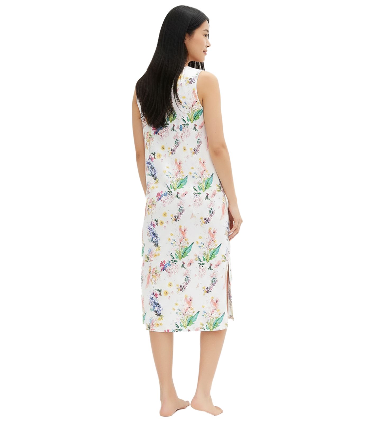 Cozy Women's Nightdress with Floral Print, Cotton Nightgown 921632 White/Multicolor