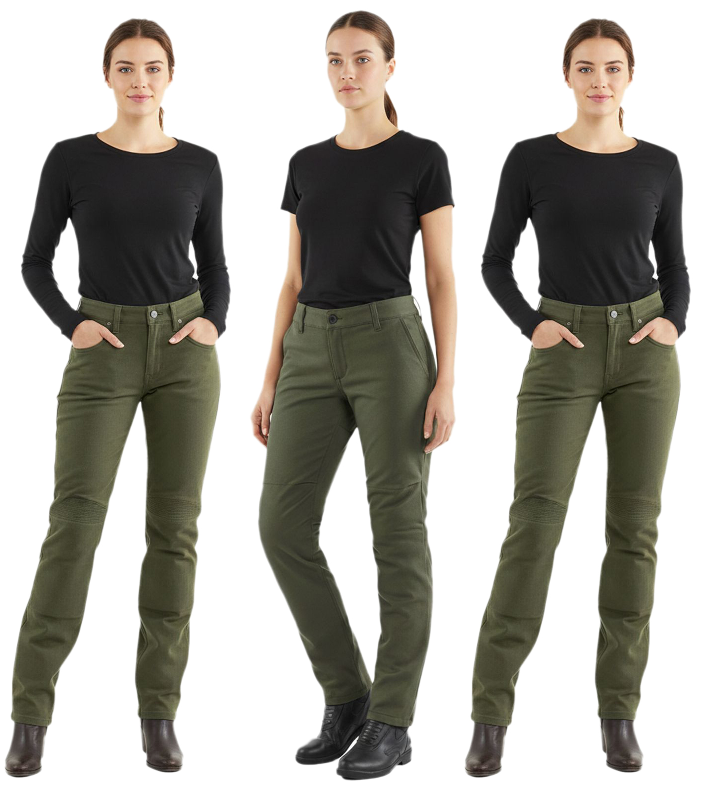 DAINESE Lady Tex Women's Motorcycle Pants with Pro-Shape 2.0 Protectors Motorcycle Jeans Motorcycle Chino Motorsport Pants 202755 Olive Green in Casual Slim, Casual Regular, or Chino Style
