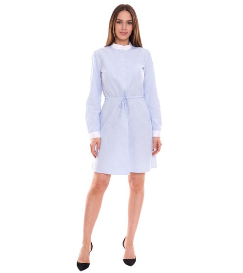 DELMAO women's cotton dress mini dress striped long-sleeved dress blouse dress 63983442 white/blue