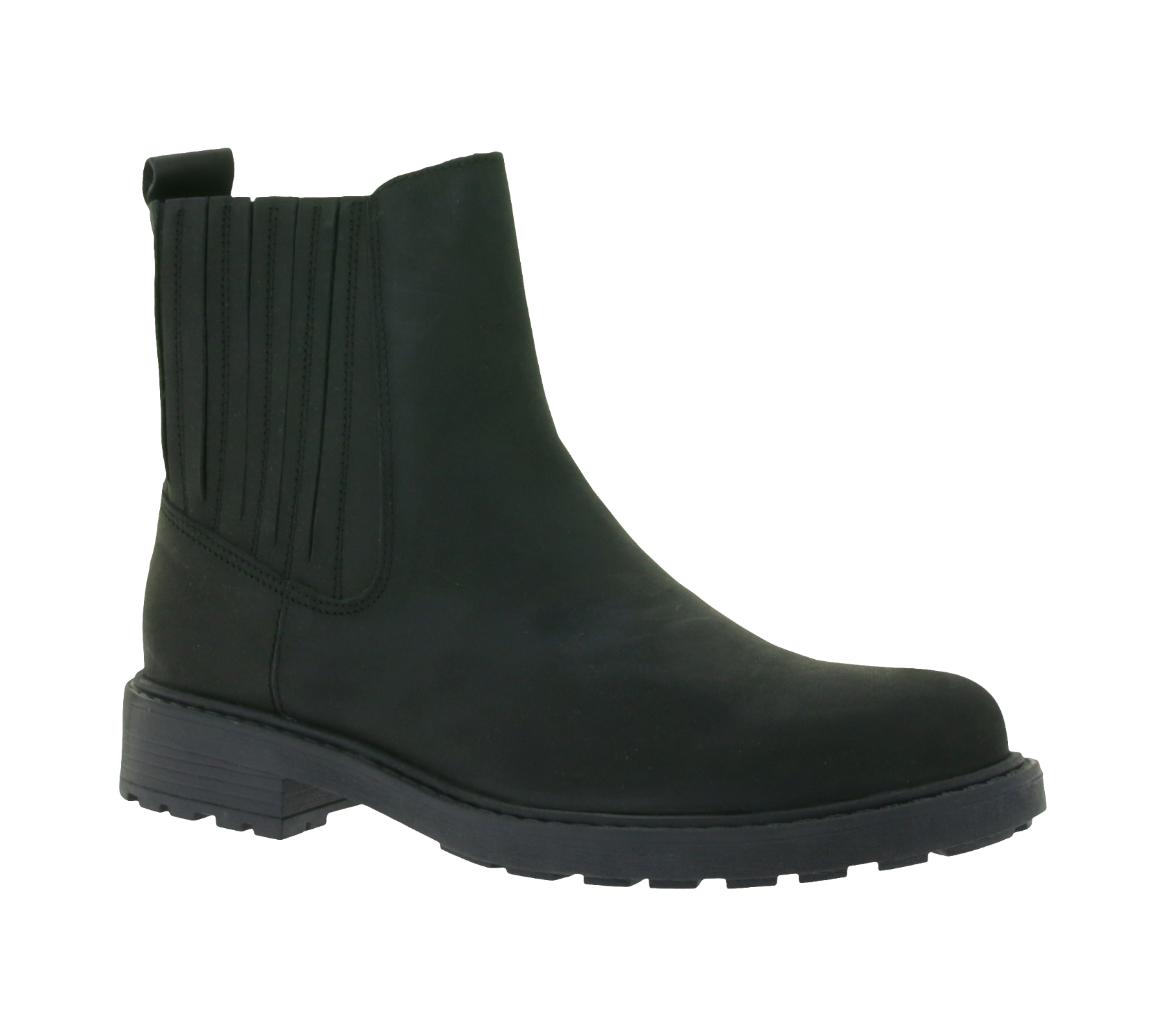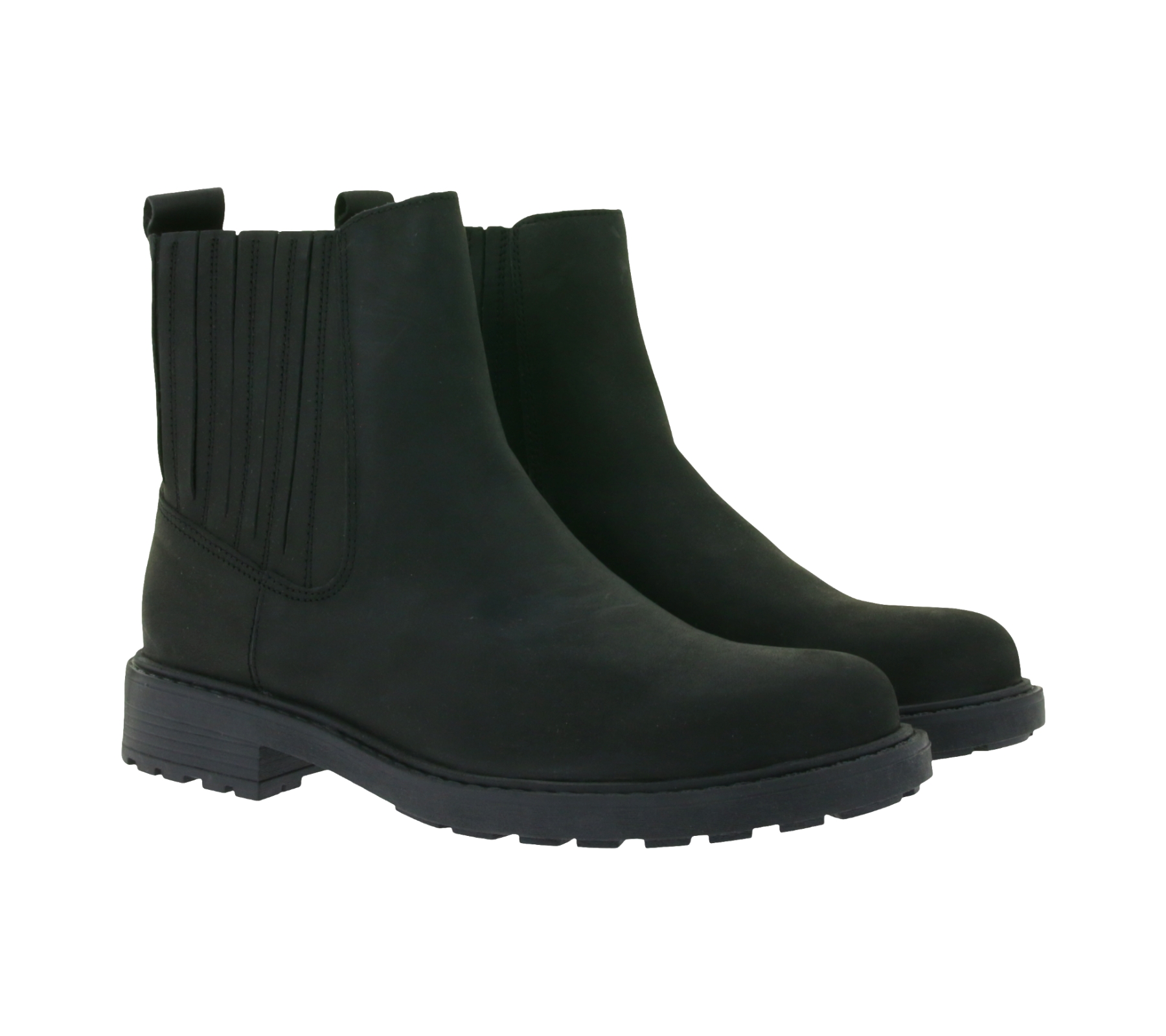 The elegant Clarks Orinoco2 Mid genuine leather women's Chelsea boots impress with their high-quality smooth leather, timeless Chelsea boot look, and exceptional comfort. The mid-height shaft, softly padded footbed, and durable outsole make them the perfect companion for everyday wear, the office, and leisure activities. In classic black, this style is incredibly versatile.