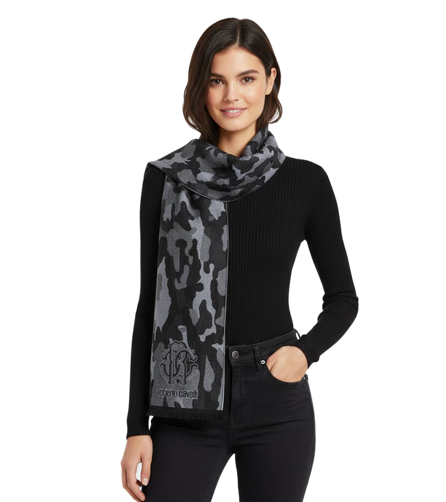 Elegant Roberto Cavalli scarf for men and women, pure wool, WOV06600004-01198, black/grey