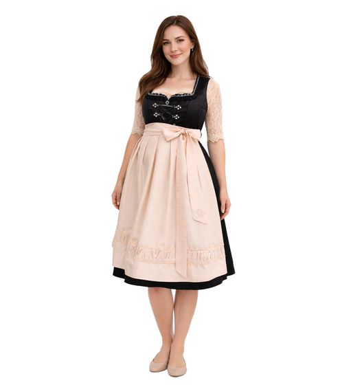 Elegant women's dirndl apron in high-quality wild silk look with lace trim 912903 pearl beige