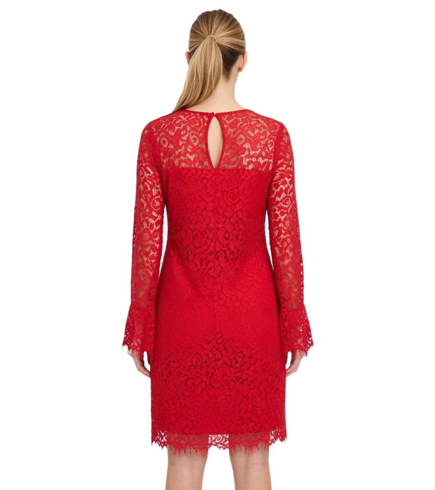 Elegant Women's Lace Mini Dress with Long Puff Sleeves, Evening Dress 912856 Red