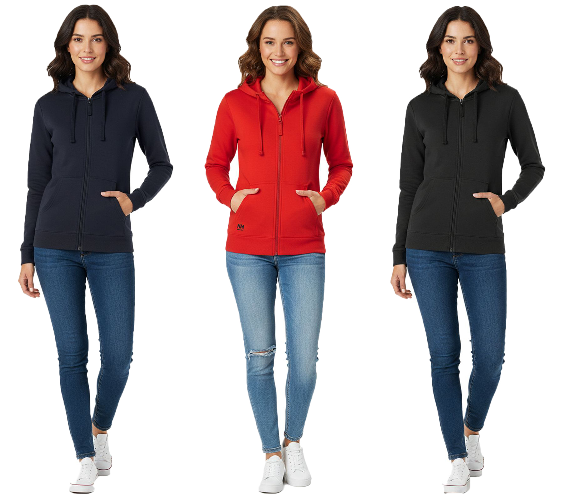 Everyday Helly Hansen Women's Zip-Up Hoodie with Pockets, 280 g/m², 79217, Black, Red, or Navy Blue