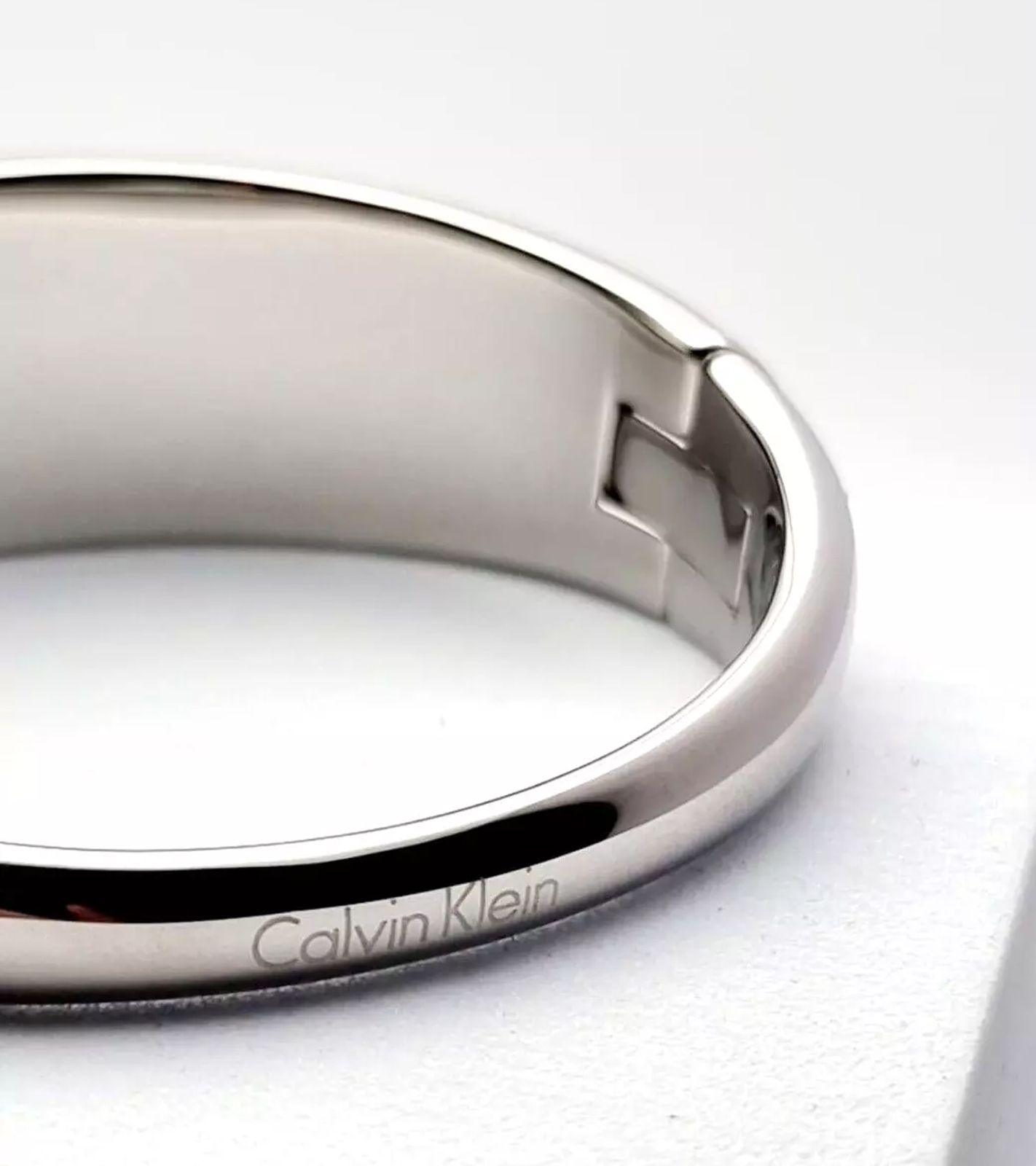Fashionable Calvin Klein Women's Bangle with Oval Stone, Stainless Steel Bracelet, Bracelet KJ3Q in Silver/White or Silver/Blue