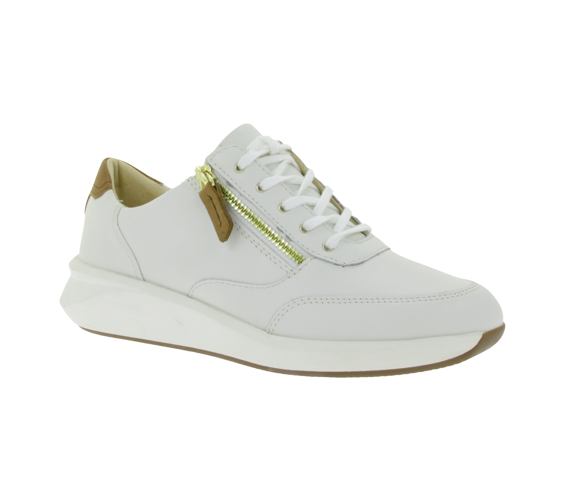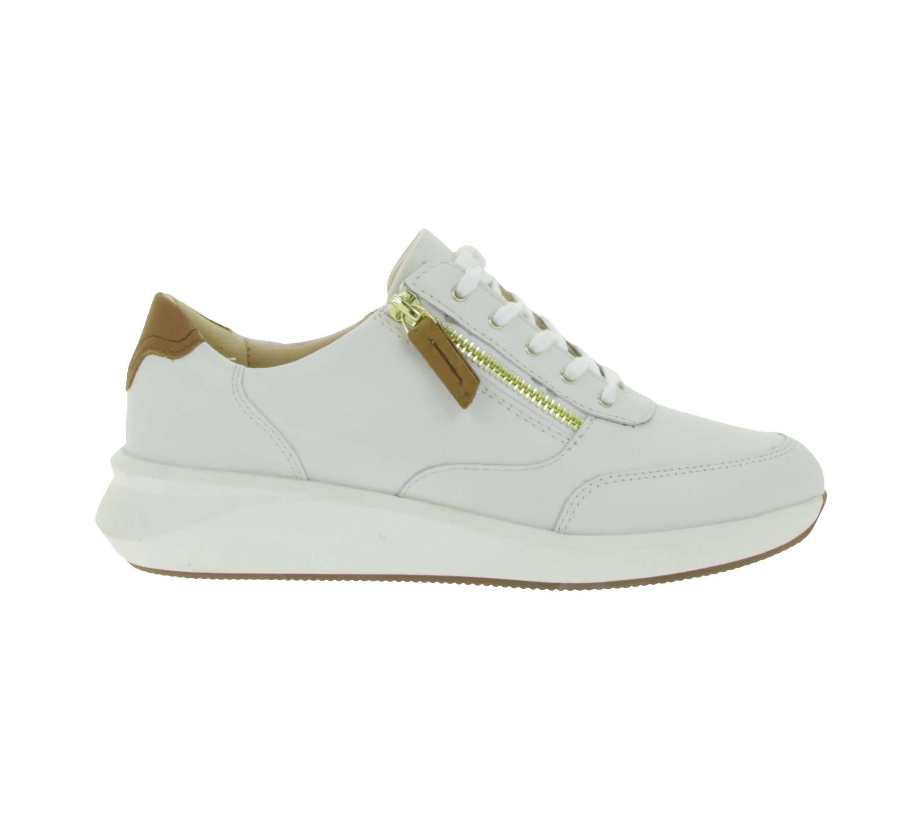 Fashionable Clarks Un Rio Zip Women's Sneakers, Genuine Leather Shoes with Zipper, Lace-Up Shoes 26167372 White