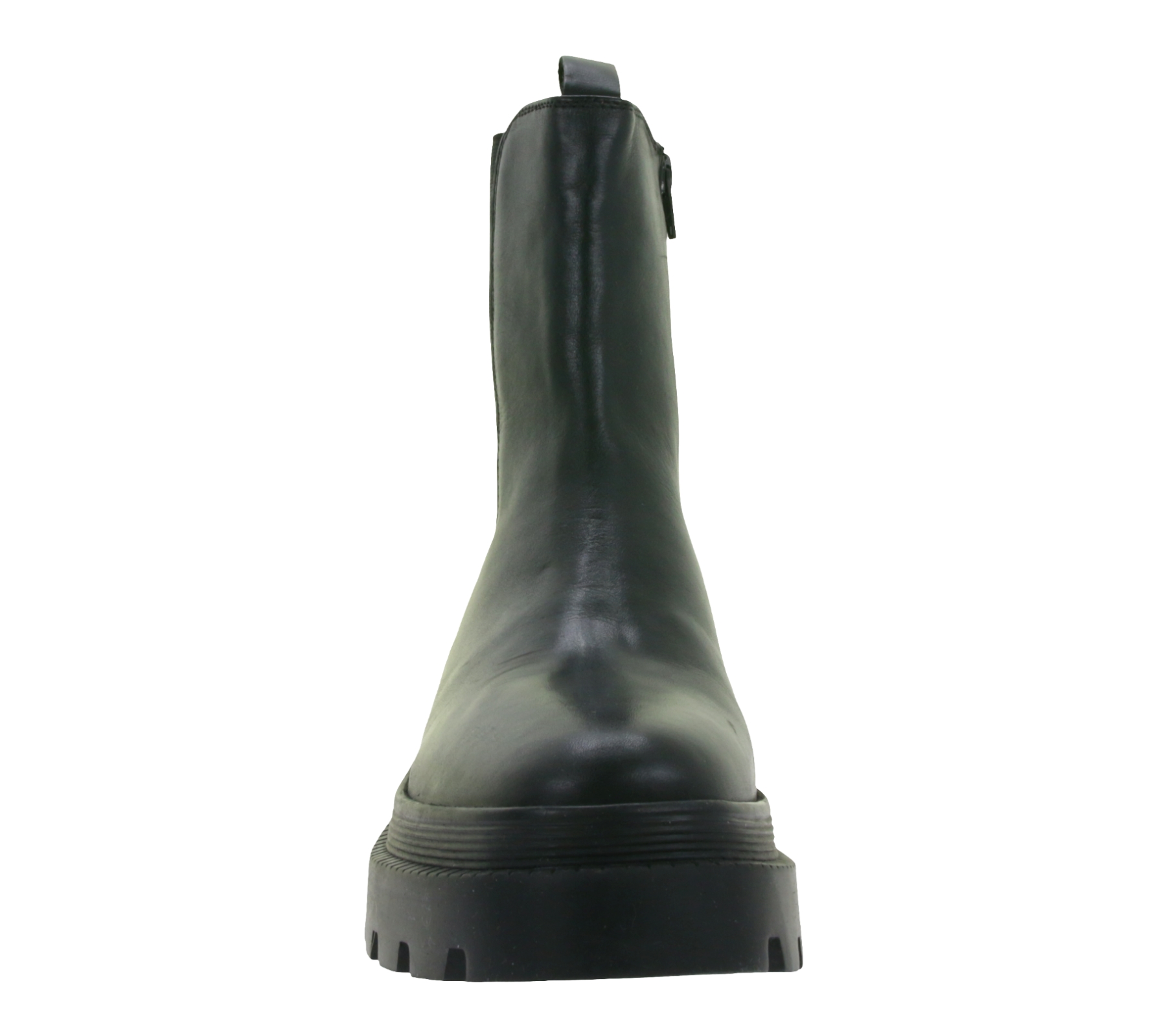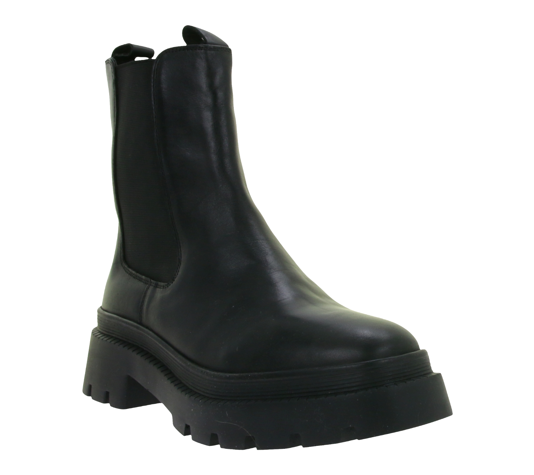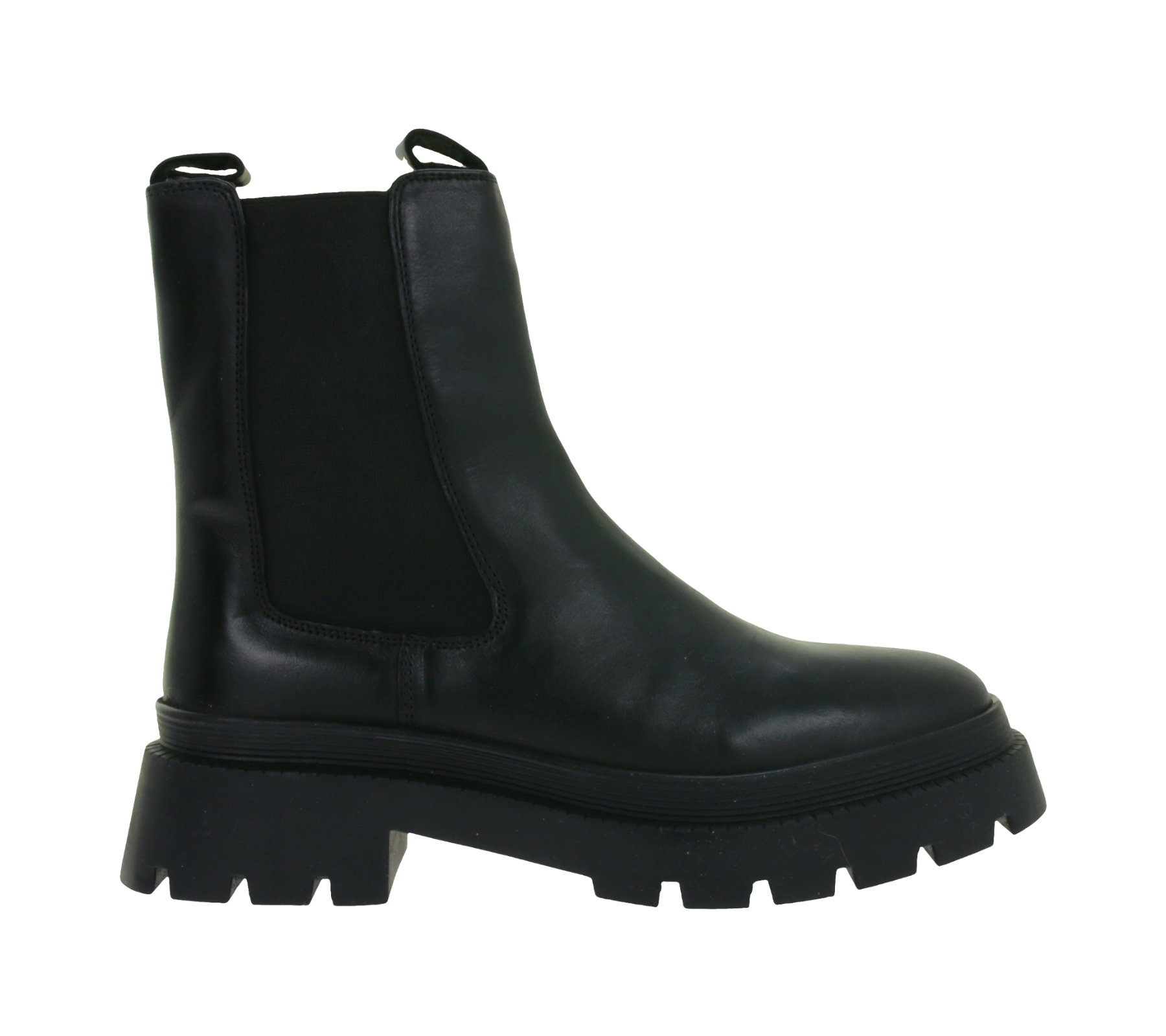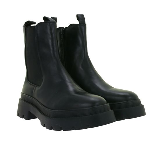Fashionable Women's Genuine Leather Chunky Chelsea Boots with Elastic Insert 975673 Black