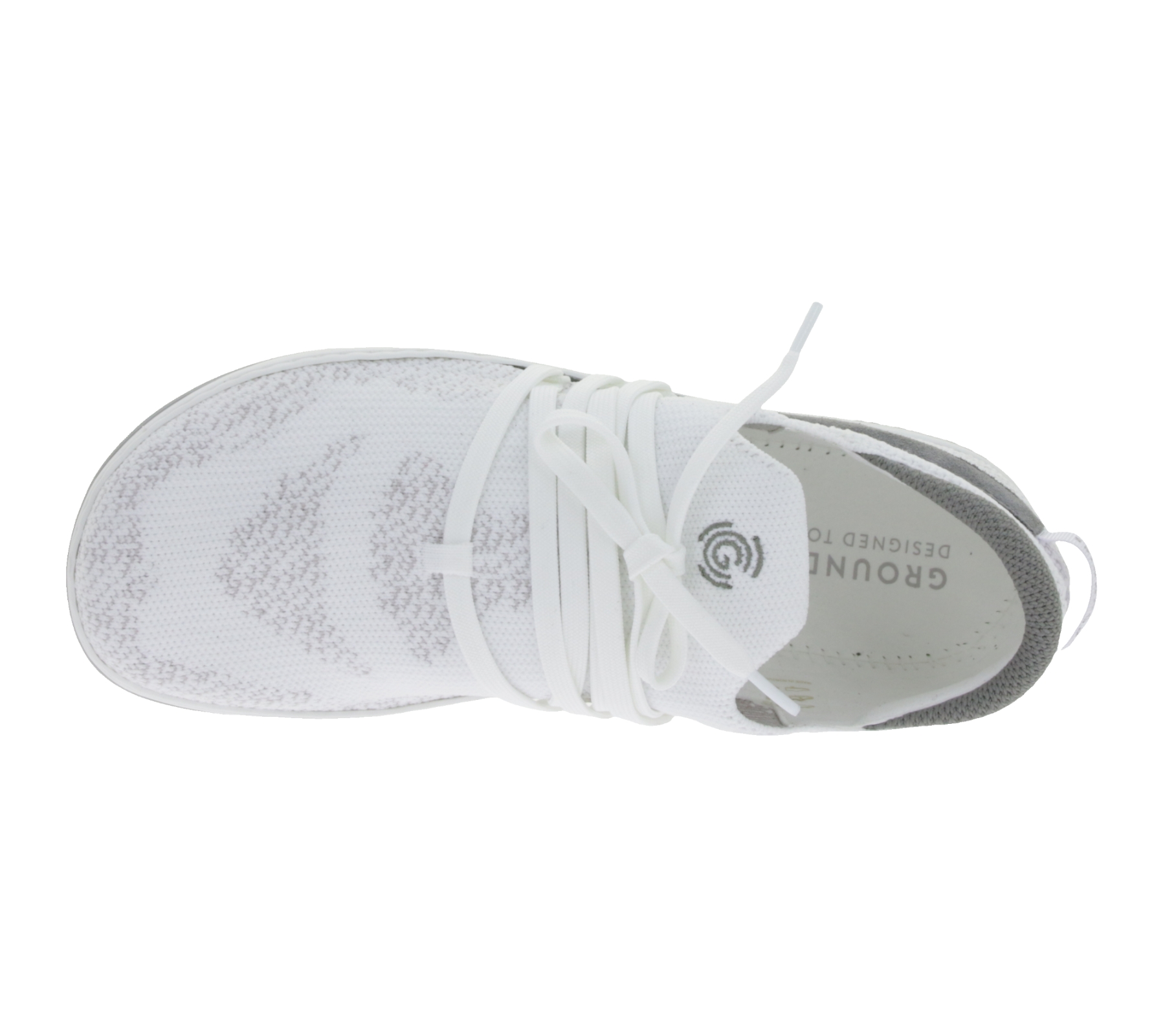 Flexible GROUNDIES Osaka Women's Low-Top Barefoot Sneakers with TrueSense Sole, Lace-Up Shoes GND-180262-02 White