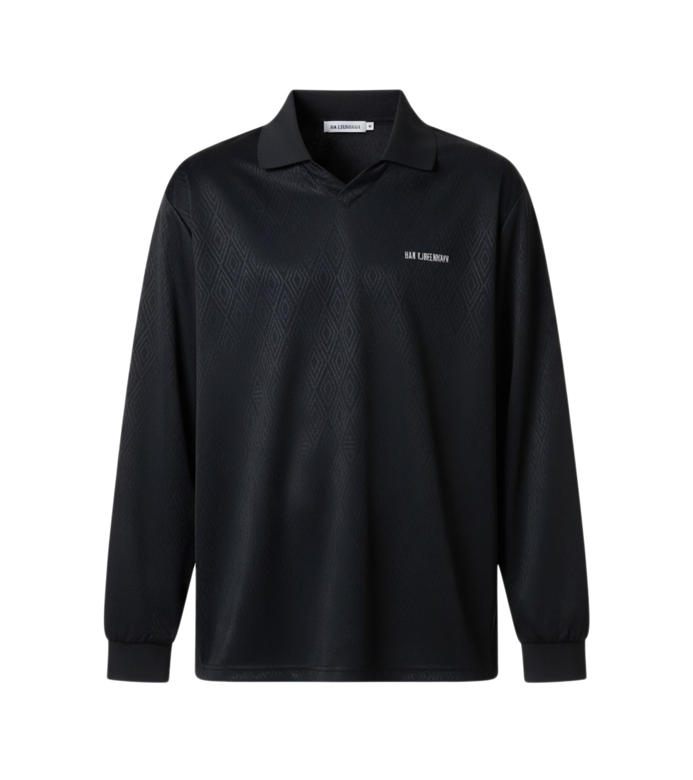 Han Kjøbenhavn Men's Long-Sleeve Football T-Shirt - Sporty, Inspired Long-Sleeve Shirt with Logo Details - Black