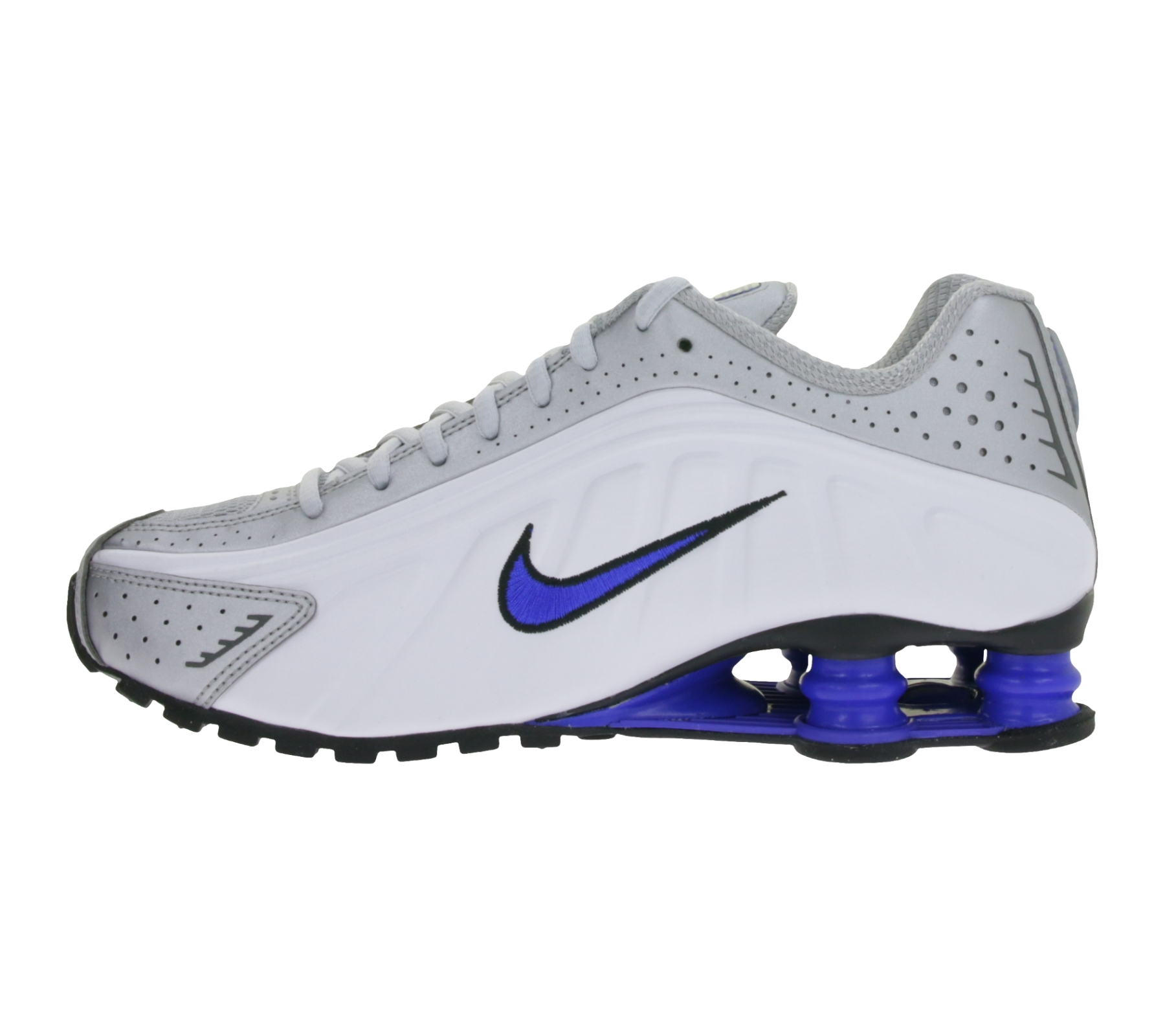 The Nike Shox cushioning with responsive columns effectively distributes weight and provides superior comfort, inspired by performance running shoes.