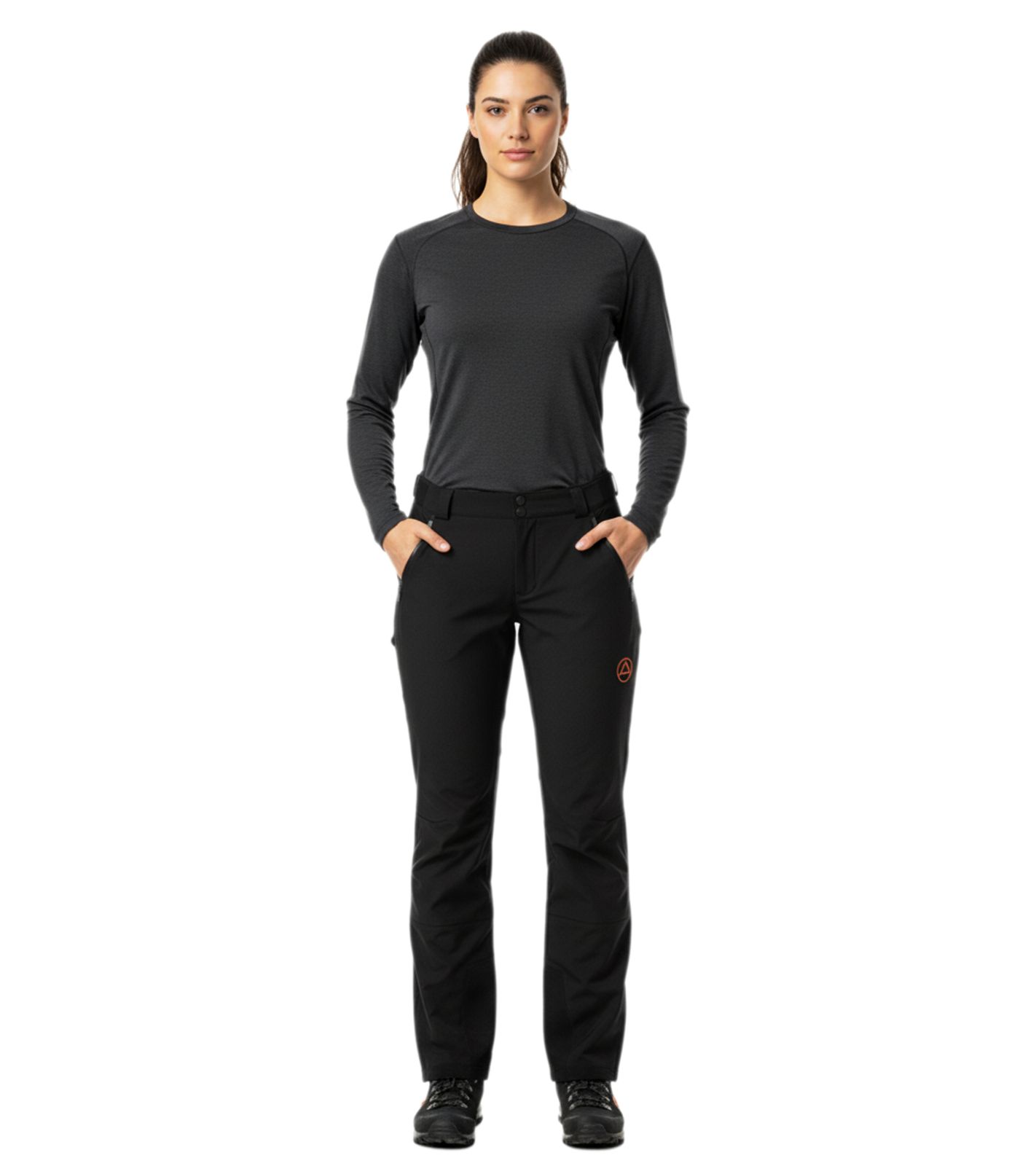 The women's Crossridge Evo Shell Pants from La Sportiva are technical softshell pants for your ski tours! Made from recycled and recyclable EvoShell™ material, they provide excellent breathability and protection from the elements. Heat-sealed seams guarantee additional durability.