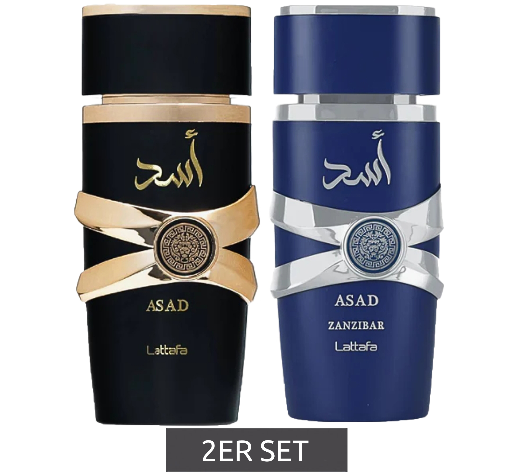 Double the Intensity and Elegance: Contains Lattafa Asad Eau de Parfum and Lattafa Asad Zanzibar Eau de Parfum, two sophisticated fragrances that reflect strength and character.