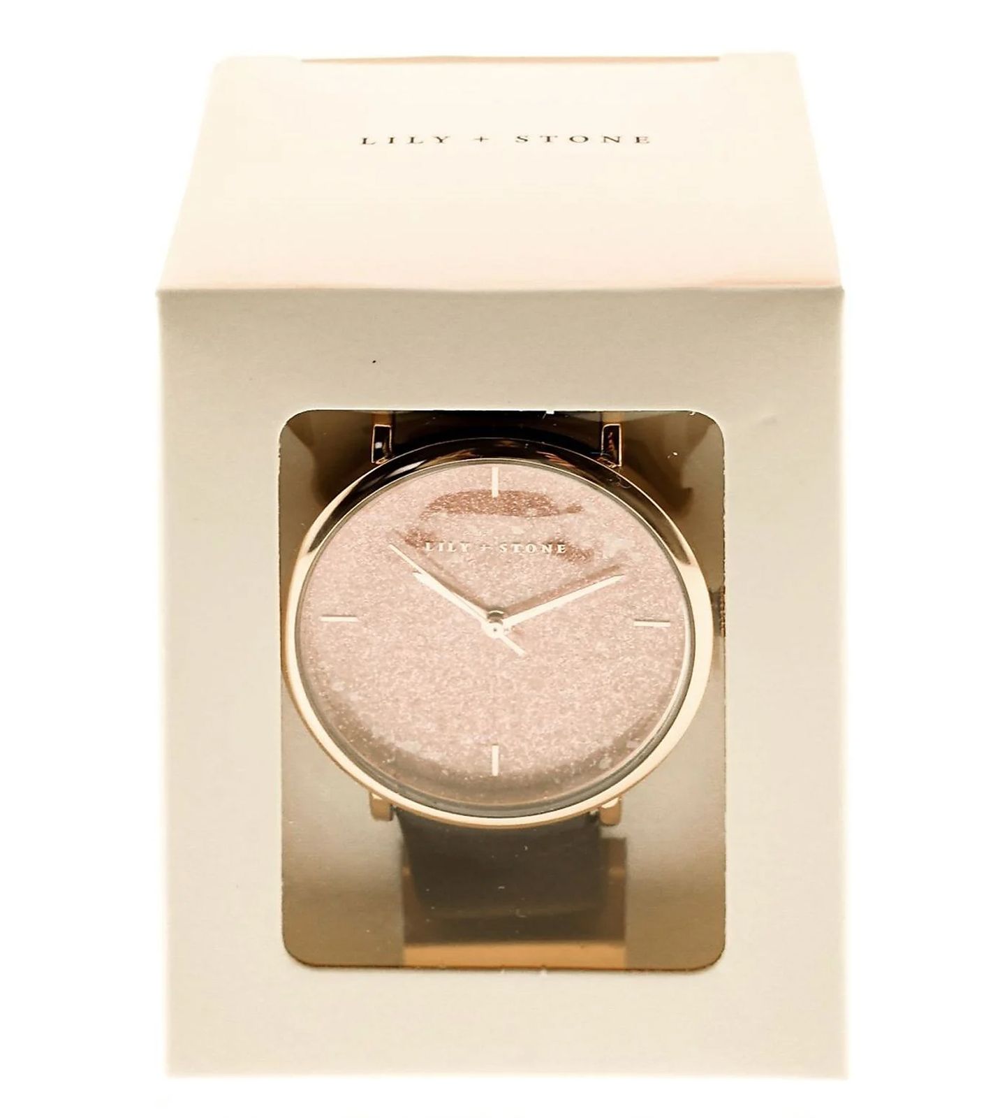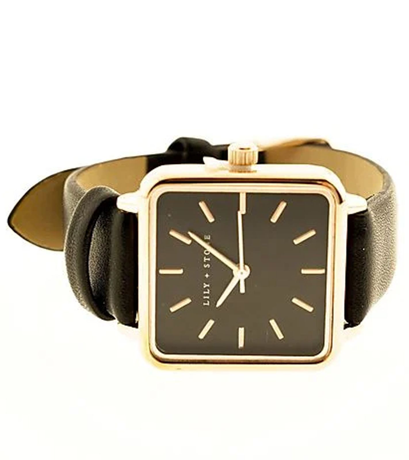 lilyandstone Women's Analog Quartz Watch with Leather Strap, Round or Square Case, Black/Rose Gold or Black/Gold