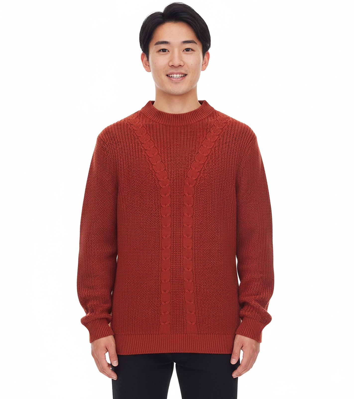 Men's Cable Knit Sweater, Sustainable Crew Neck Sweater 970108 Rust Brown