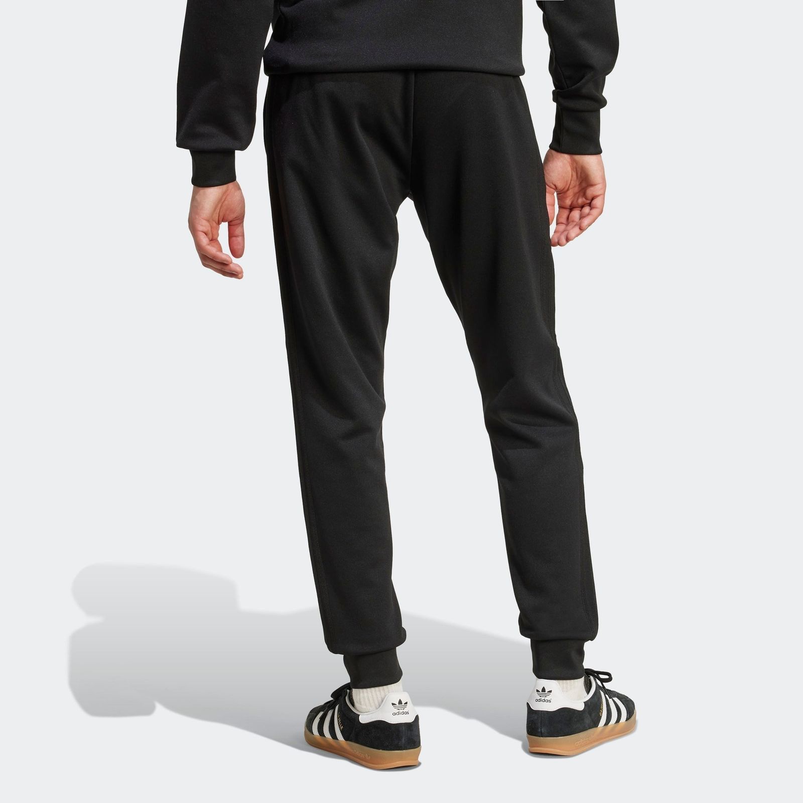 - Embroidered Trefoil logo adds a classic touch. Soft material ensures high wearing comfort for relaxing and sports. Elastic waistband with drawstring allows for individual adjustment. Slim-fit tracksuit bottoms for a comfortable fit when running. Ribbed leg openings offer secure support and a retro look. Show less. The best of yesteryear, reimagined for today.