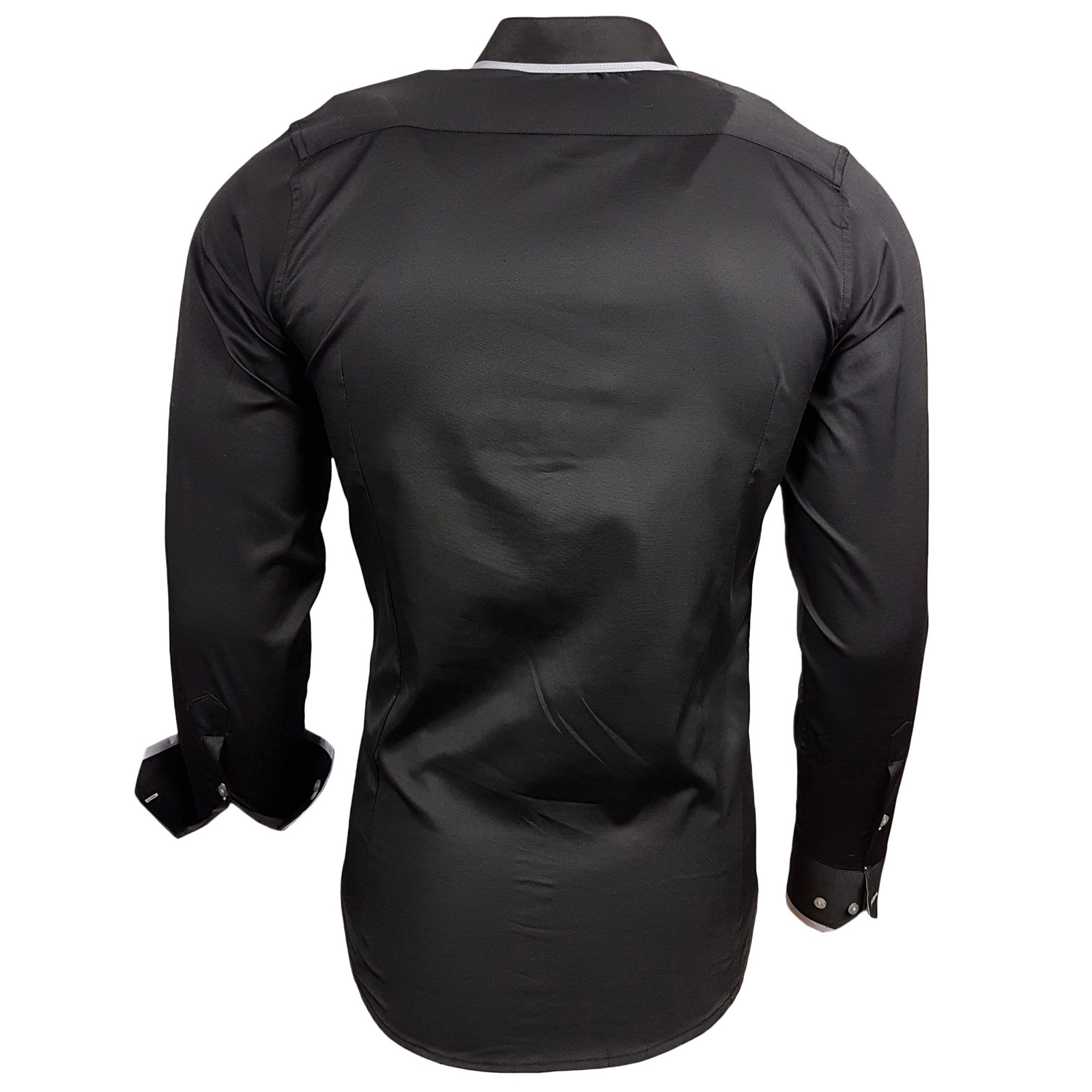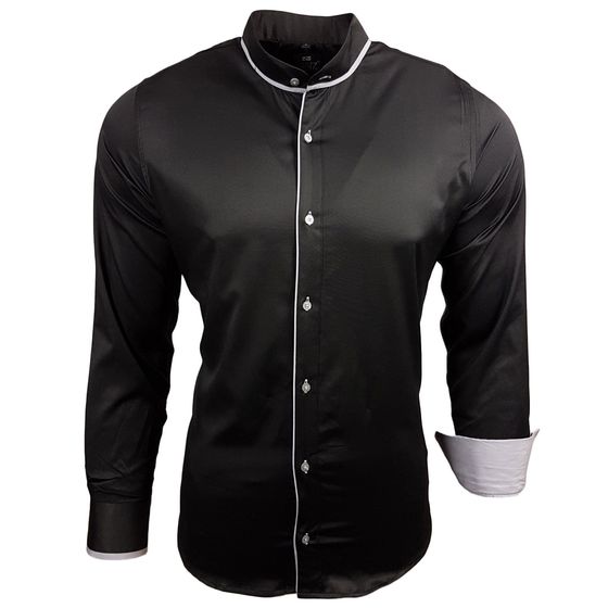Modern long-sleeved shirt for men, going-out shirt with Mao collar, business shirt 11014 Black