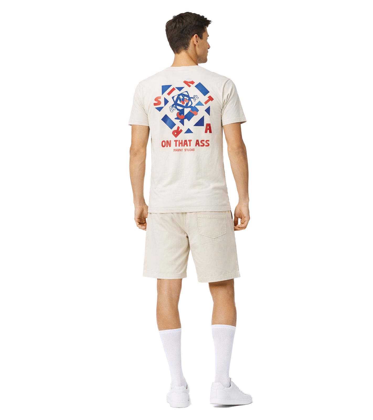 ON THAT ASS Men's Summer Set, 2-Piece: Cotton T-Shirt & Jersey Shorts, Modern Streetwear Outfit, Beige